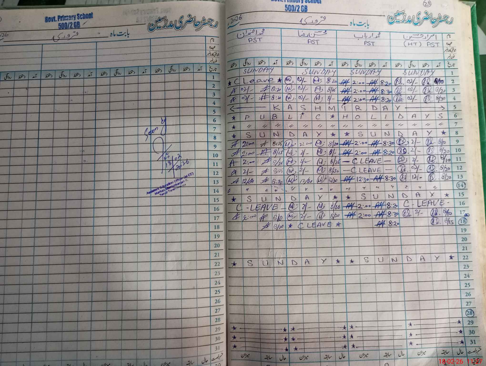 | Name: IS**** HU**** Designation: (School Headmaster's/Headmistress's) PST Phone/Cell Number: 03**** |