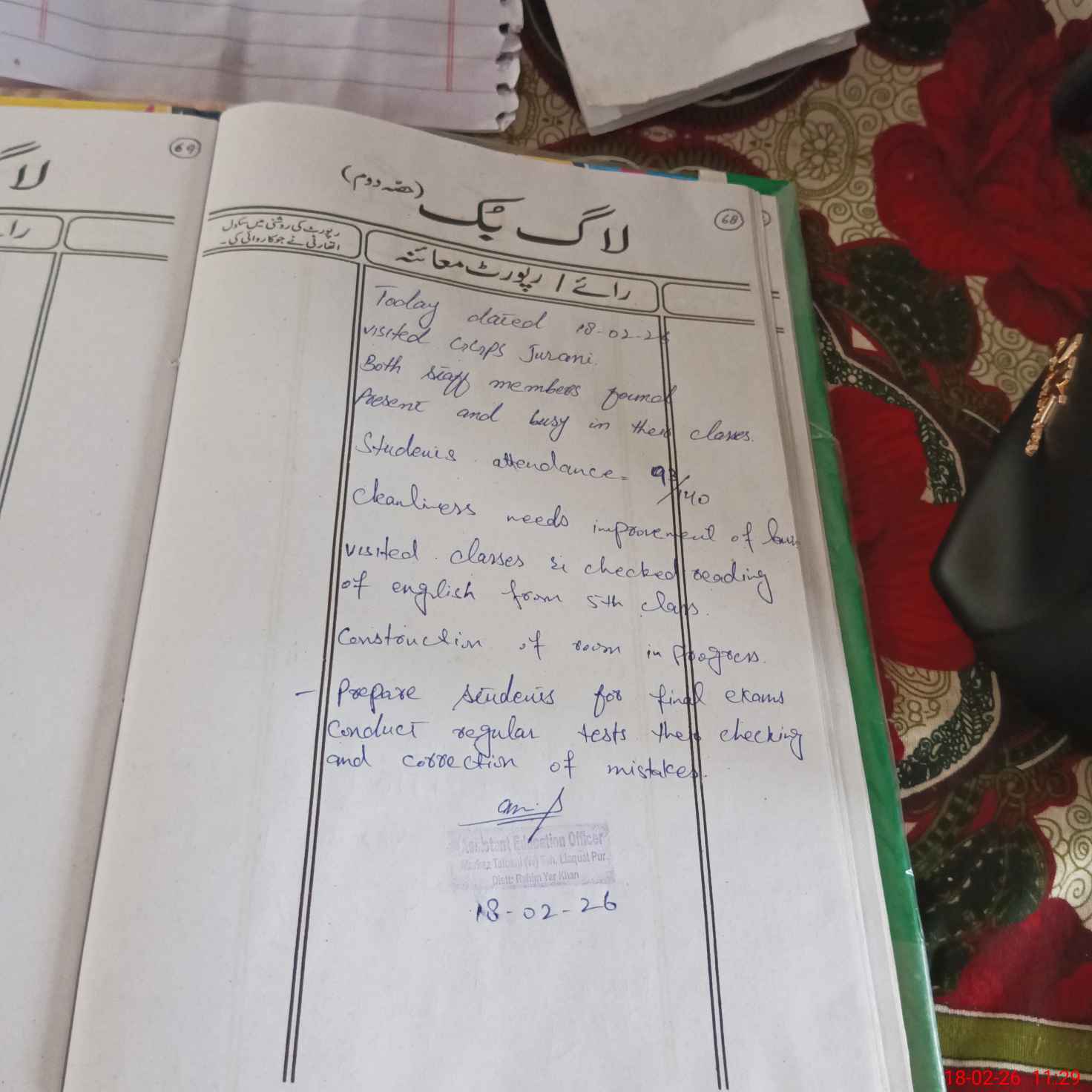 | Certified that this School was Inspected by the Undersigned MEA/DMO Today and the Information Stated Above is as Per Record. | |||||