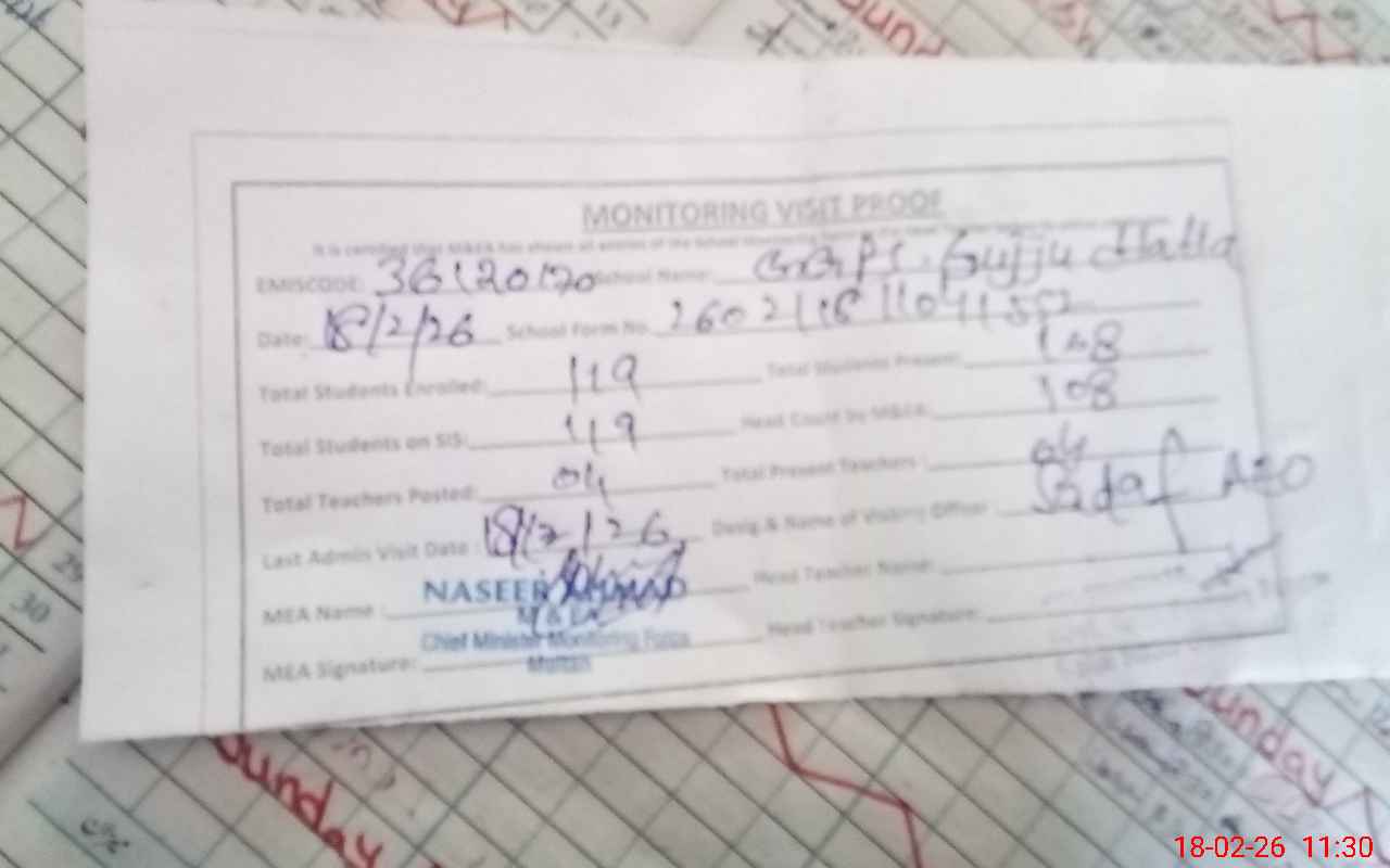 | EMIS Code: 36120170 | Name of School: GGPS GAJJU HATTA SHUJABAD | |||