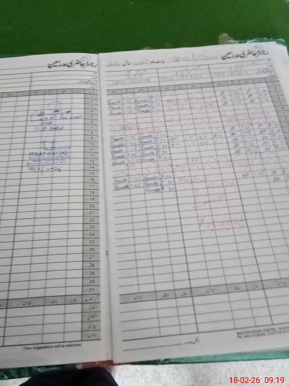 | CNIC | Full Name | Designation | R/C | Absence During Last Calender Month |