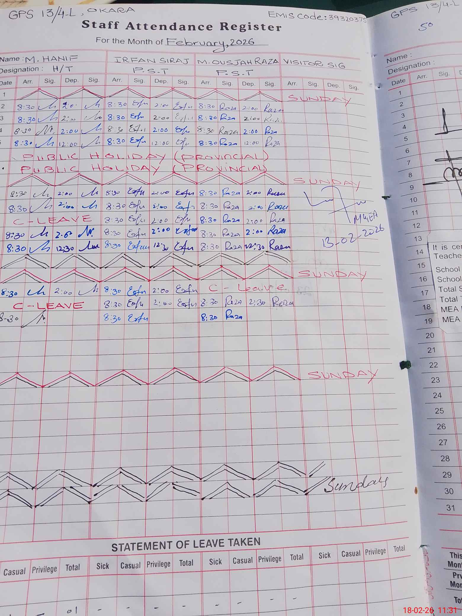 | EMIS Code: 39320375 | Name of School: GPS CHAK 13/4-L | |||