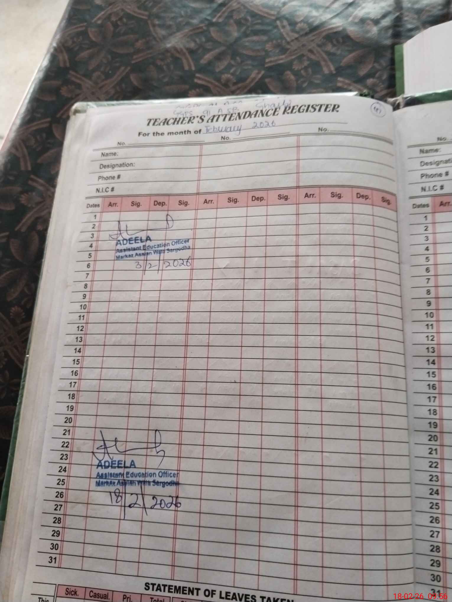 | Name: Sa**** Ma**** Designation: (School Headmaster's/Headmistress's) PST Phone/Cell Number: 03**** |