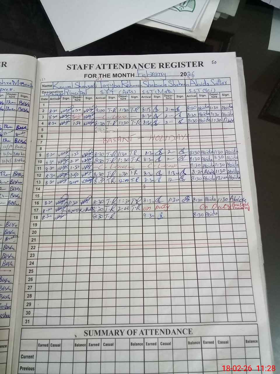 | Leave | Duty | Absent | Maternity | Medical | Ex- Pak |