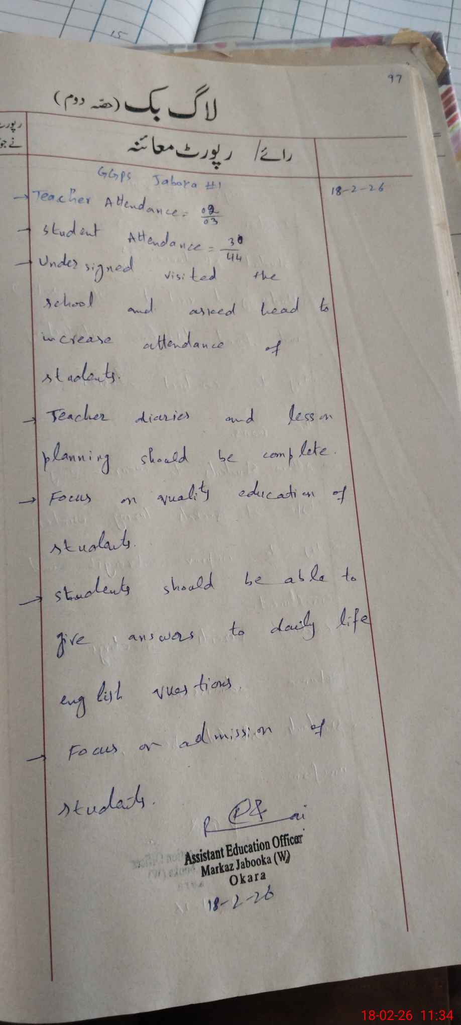 | Certified that this School was Inspected by the Undersigned MEA/DMO Today and the Information Stated Above is as Per Record. | |||||