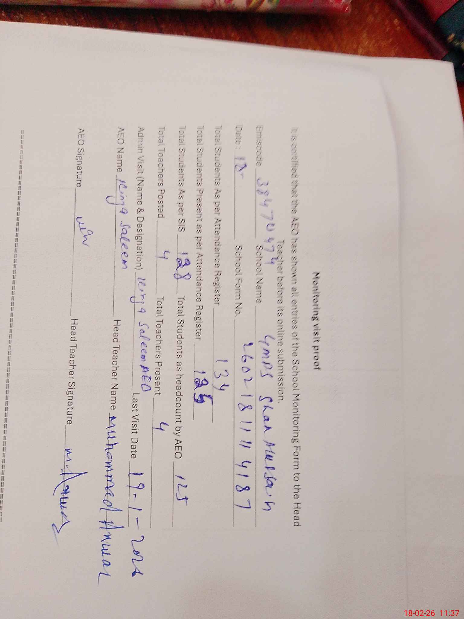 | EMIS Code: 38470474 | Name of School: GMPS SHAH HUSSAIN | |||