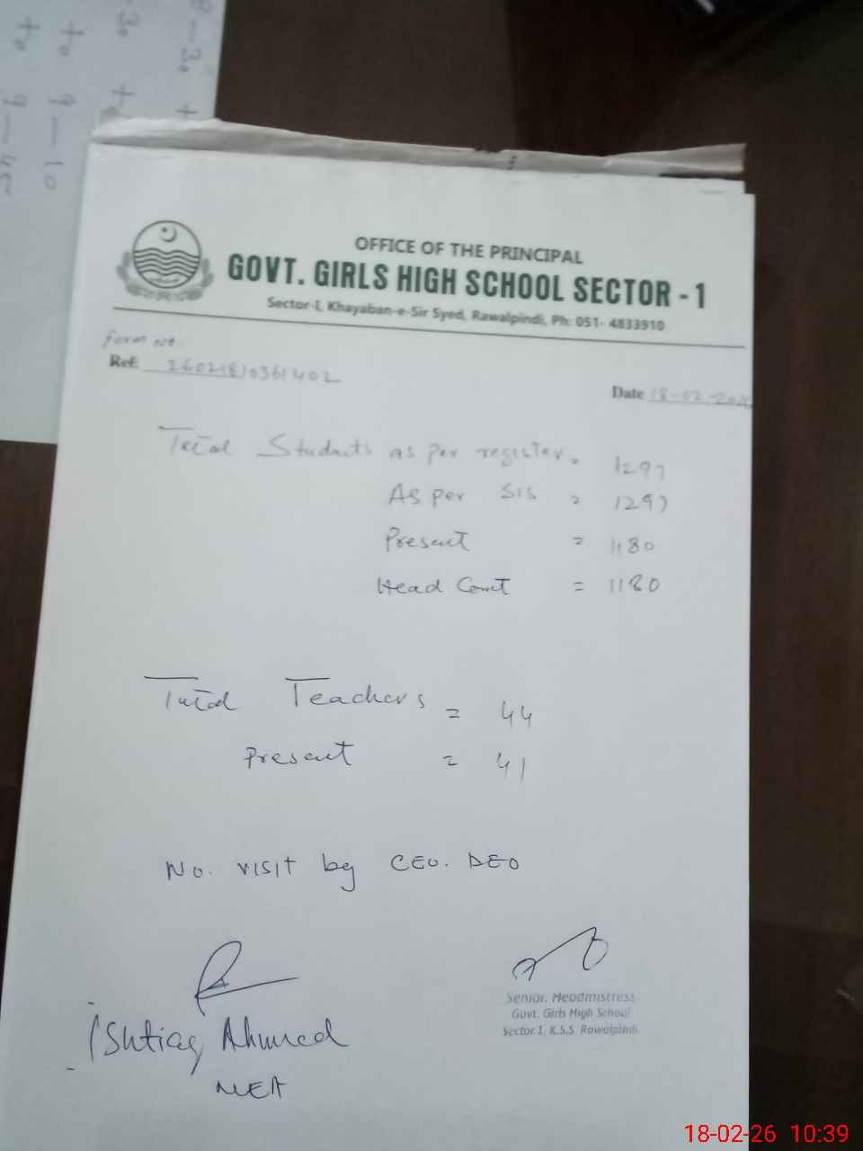 | Name: Mr**** Sa**** Im**** Designation: (School Headmaster's/Headmistress's) Sr Headmistress Phone/Cell Number: 03**** |