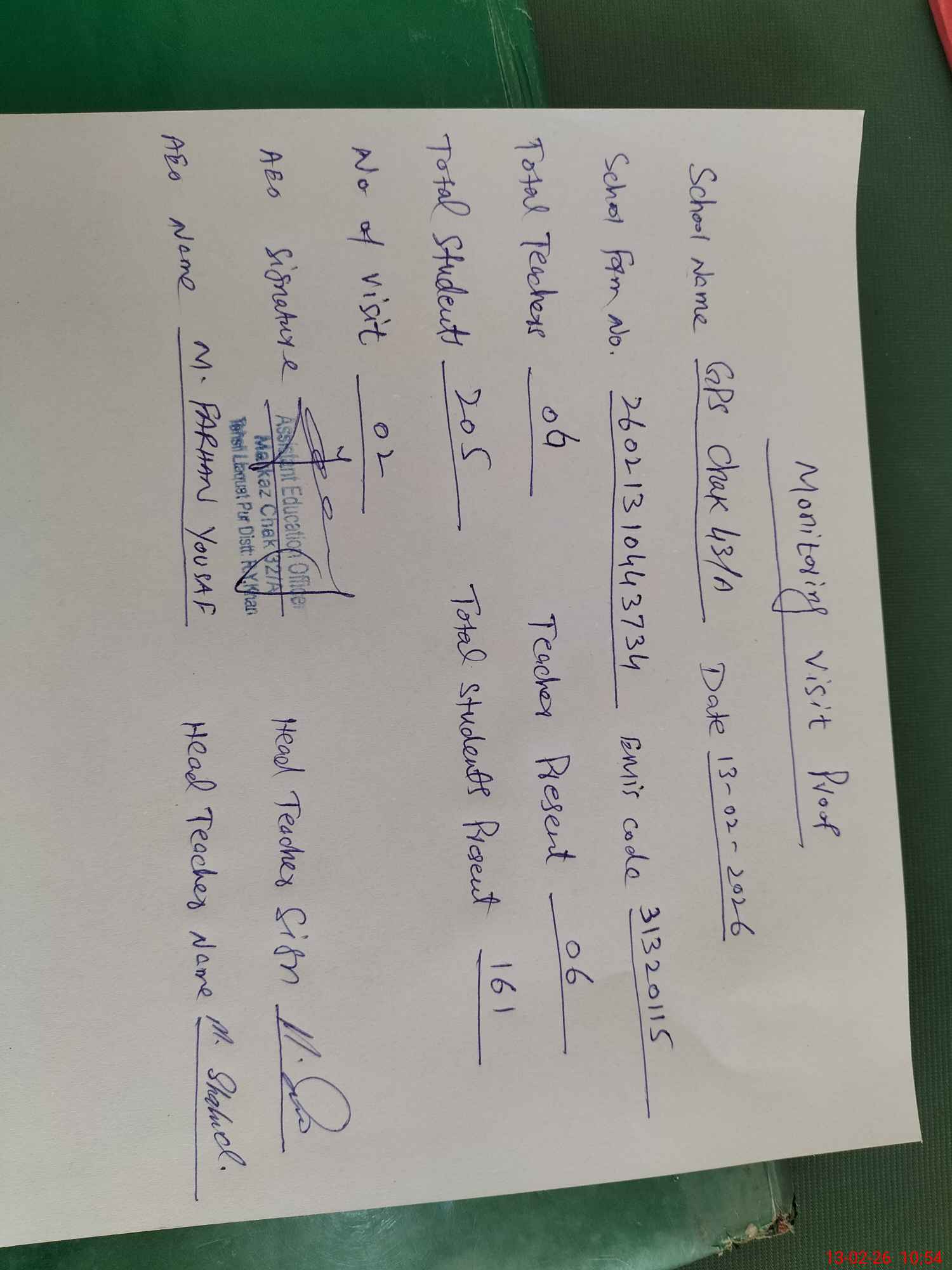 | EMIS Code: 31320115 | Name of School: GPS 43/A | |||