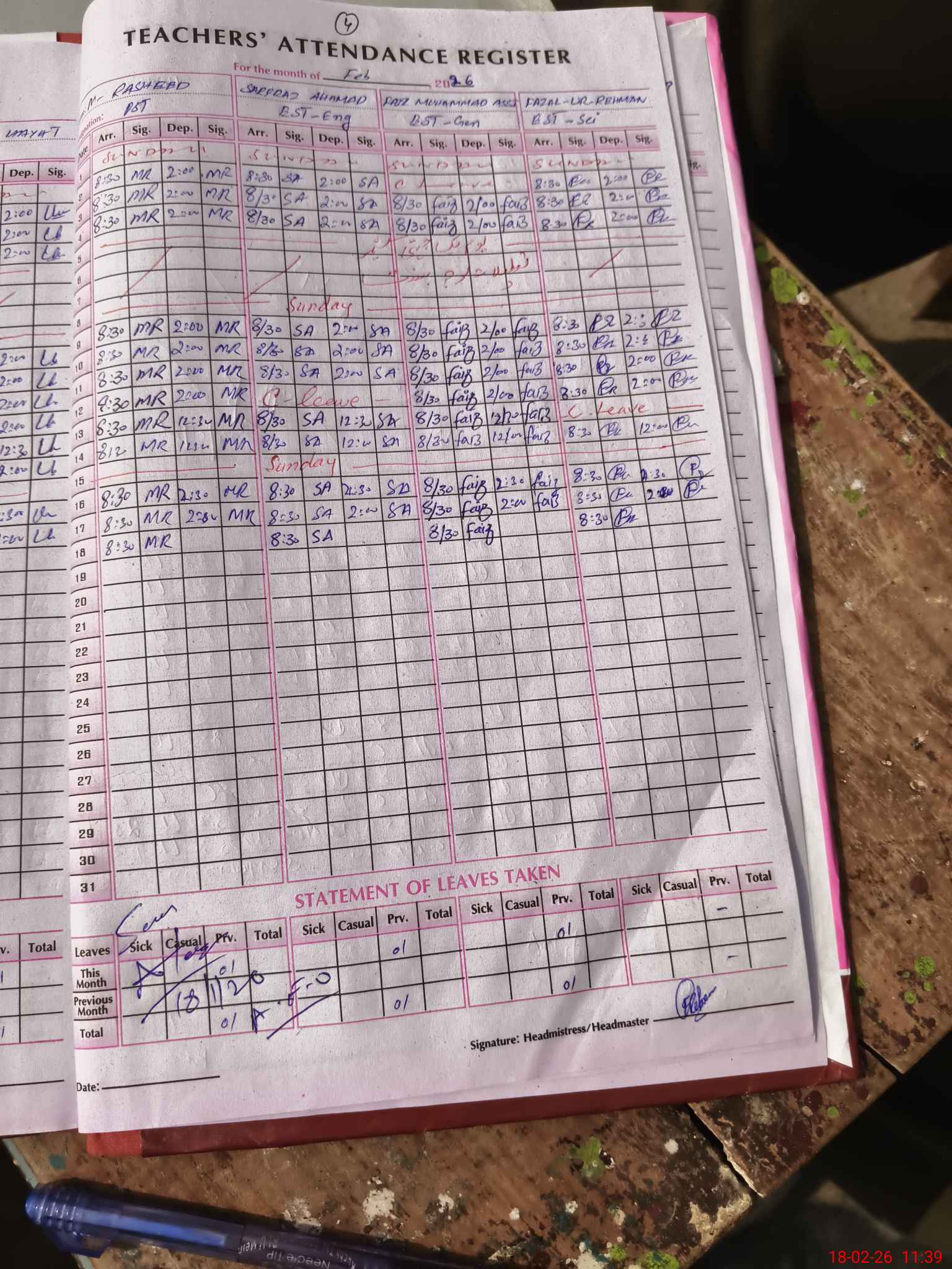 | Attendance Register | Head Teacher | MEA with School | Visit Proof |