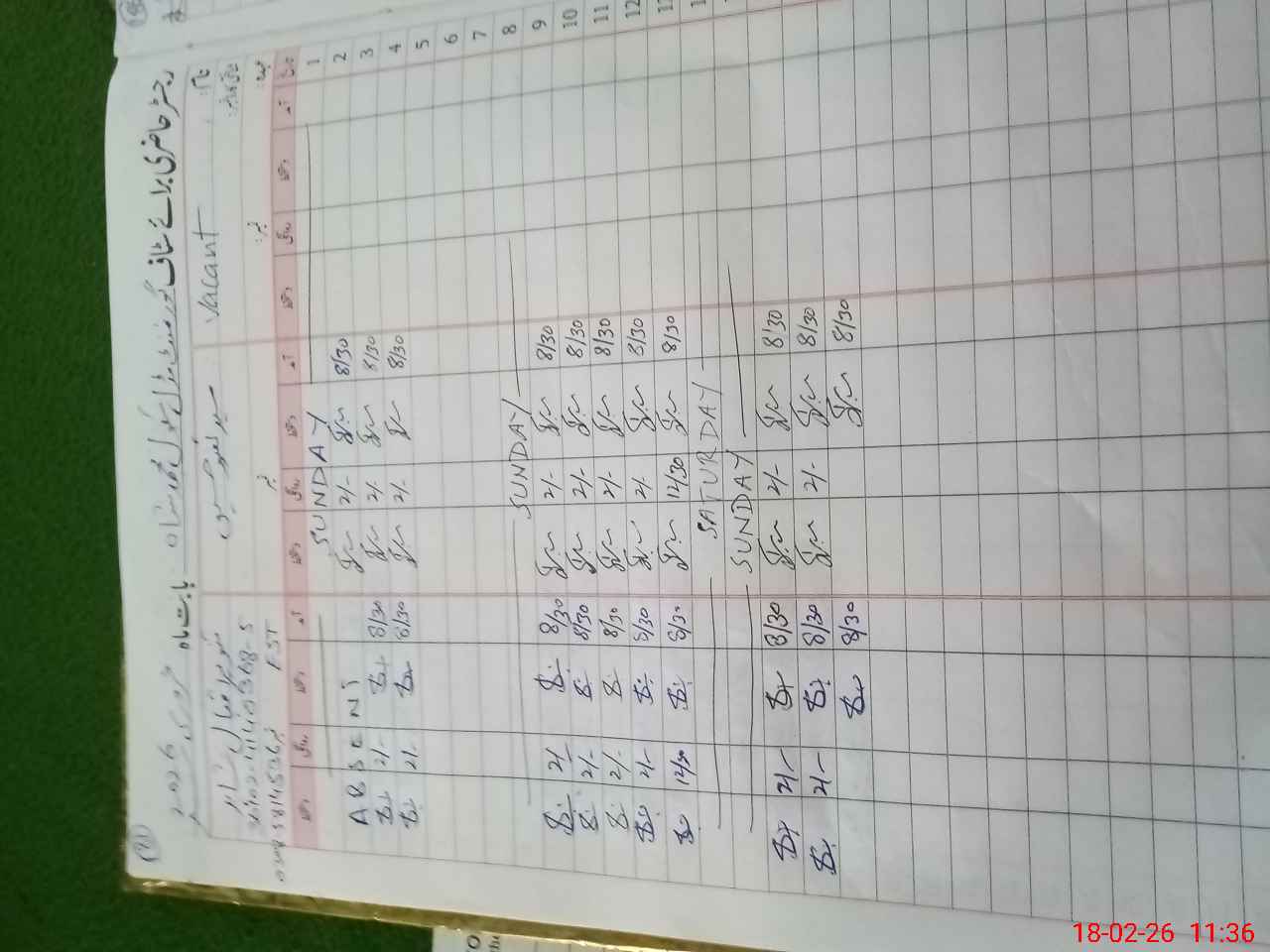 | CNIC | Full Name | Designation | R/C | Absence During Last Calender Month |