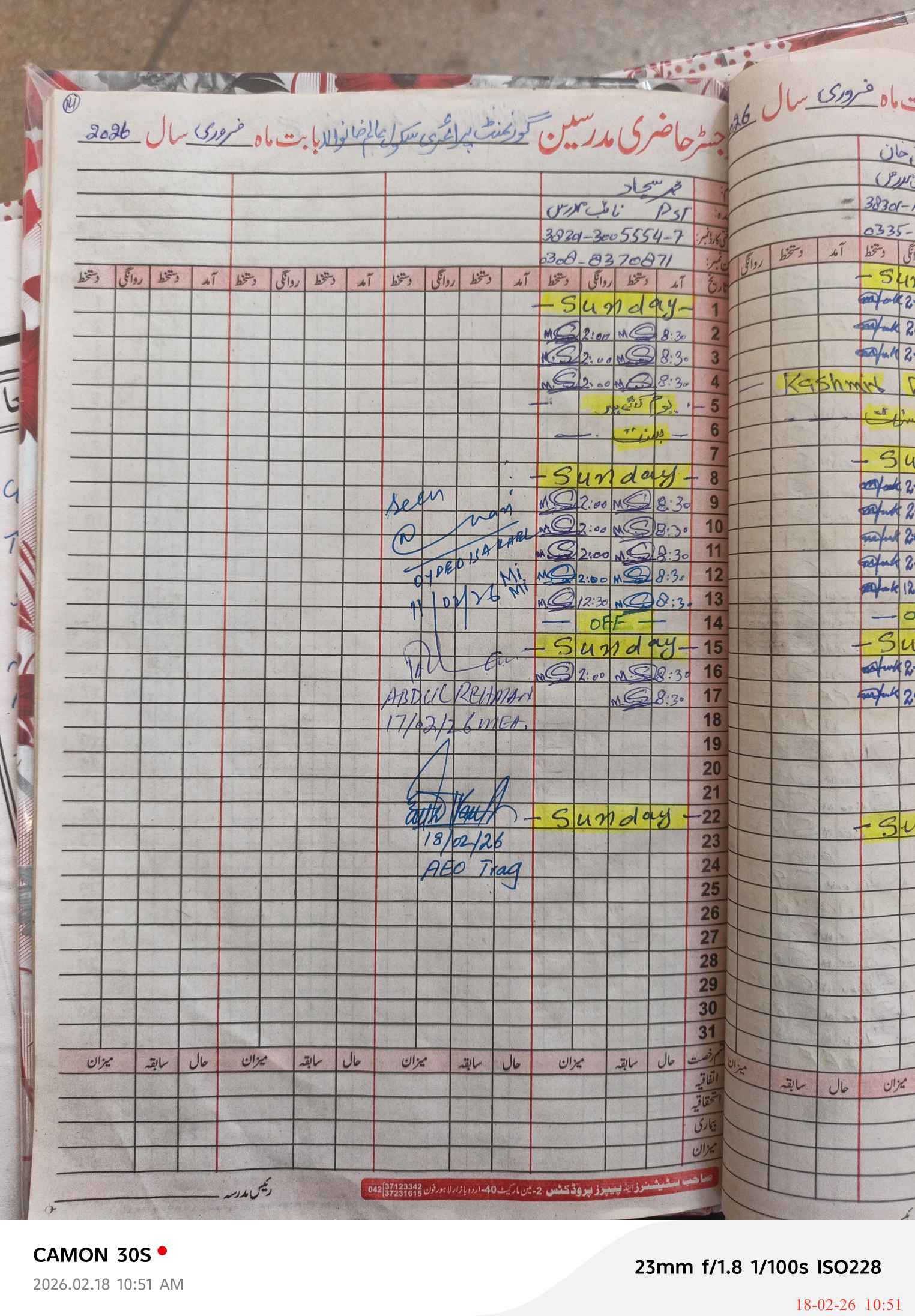 | Name: Sh**** Je**** Designation: (School Headmaster's/Headmistress's) PST Phone/Cell Number: 03**** |