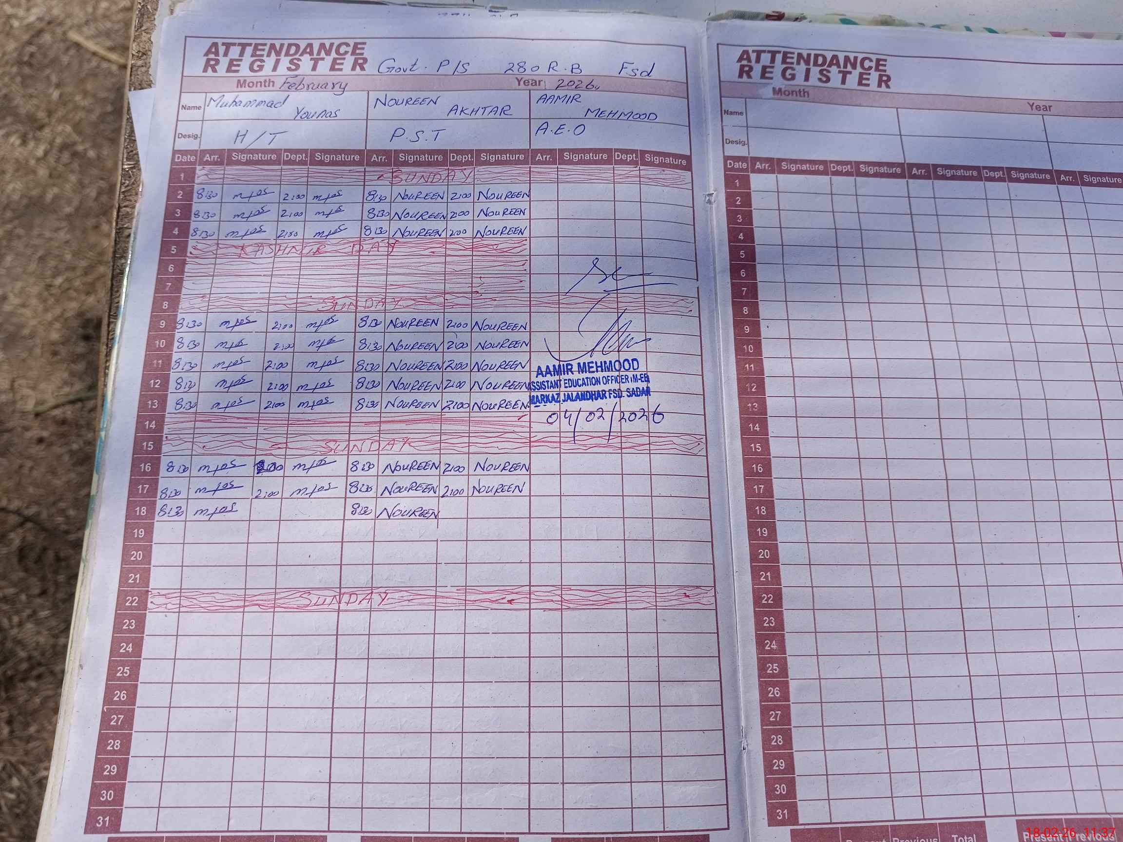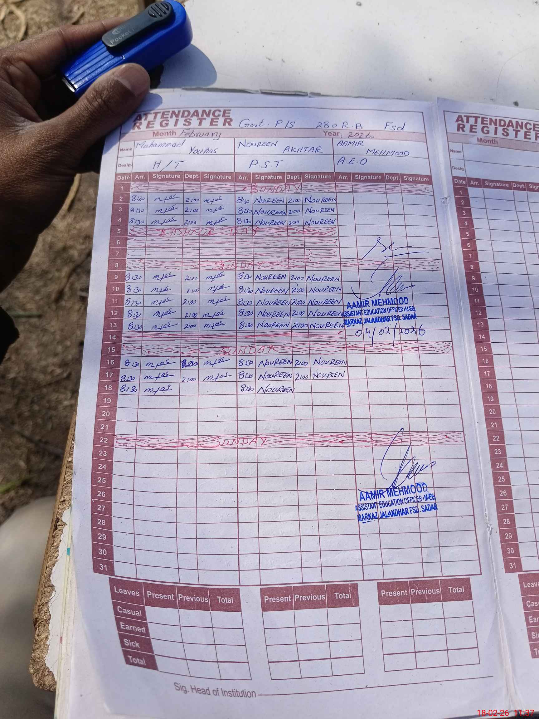 | Attendance Register | Head Teacher | MEA with School | Visit Proof |
