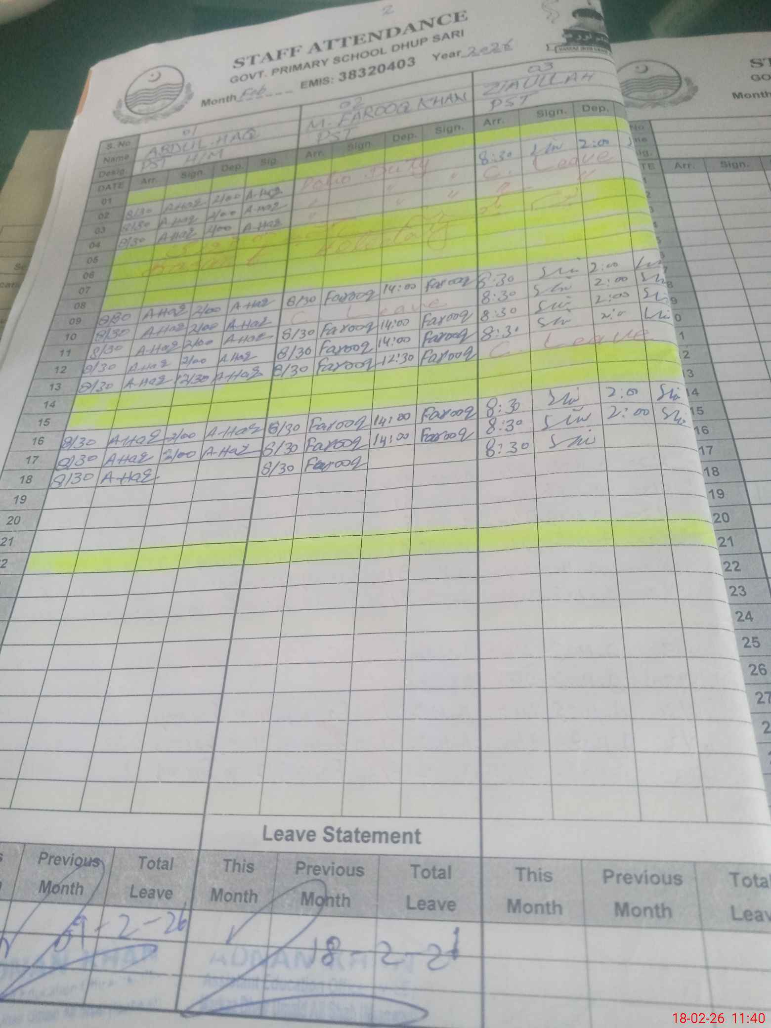 | Name: Mu**** Fa**** Kh**** Designation: (School Headmaster's/Headmistress's) PST Phone/Cell Number: 03**** |