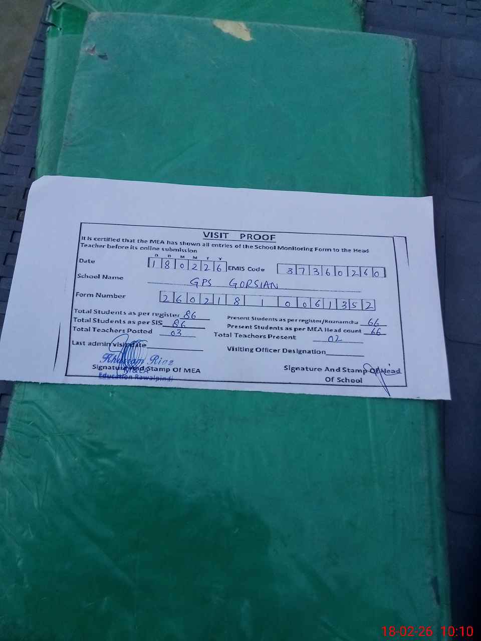 | EMIS Code: 37360260 | Name of School: GPS GORSIAN | |||