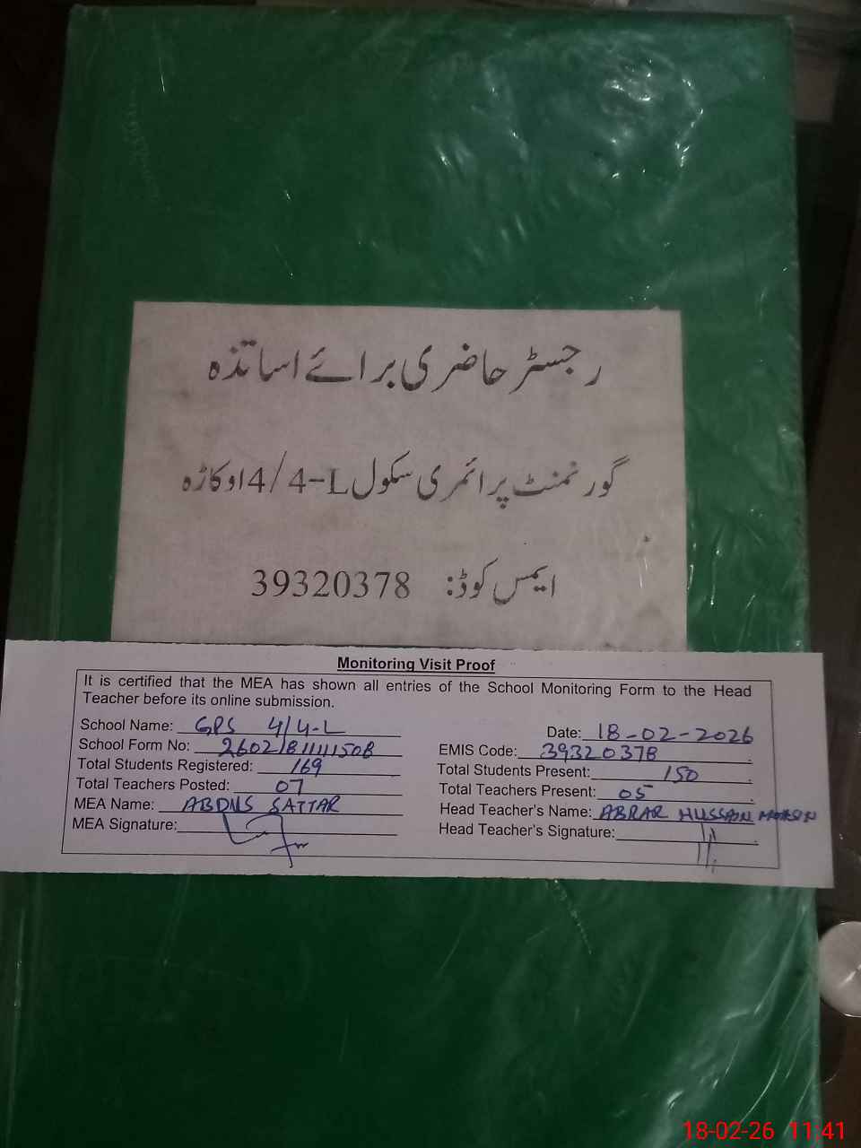 | EMIS Code: 39320378 | Name of School: GPS CHAK 4/4-L | |||