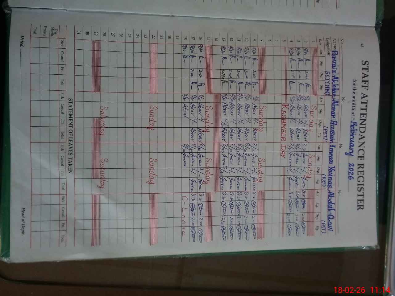 | Remarks (Use Separate Page if Required): Pervaiz Akhtar EST was marked as present but physically absent from school | |||||