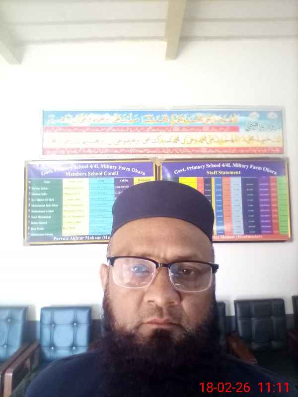 | Name: PE**** AK**** Designation: (School Headmaster's/Headmistress's) HEADMASTER Phone/Cell Number: 03**** |