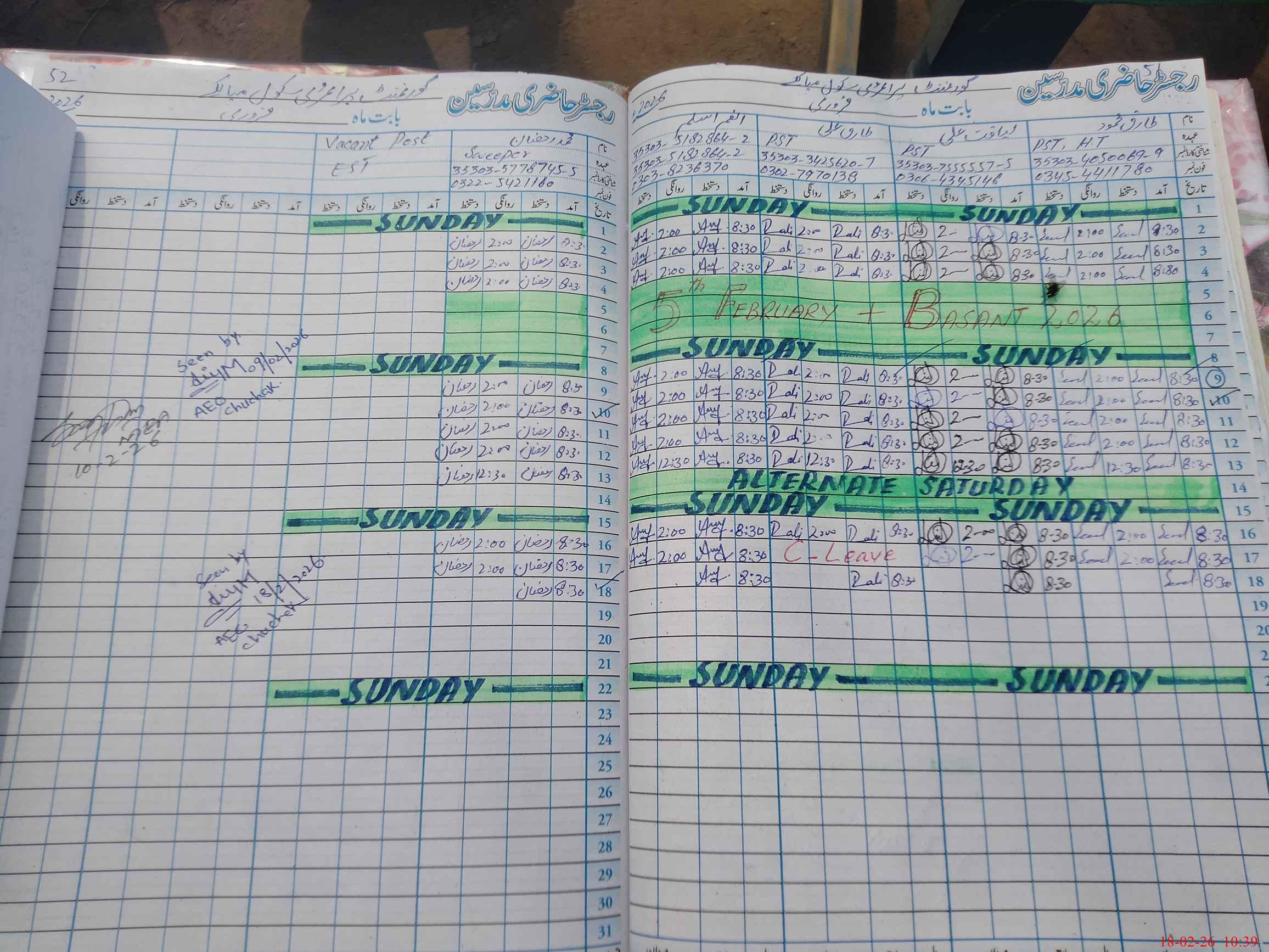 | Name: LI**** Al**** Designation: (School Headmaster's/Headmistress's) PST Phone/Cell Number: 03**** |