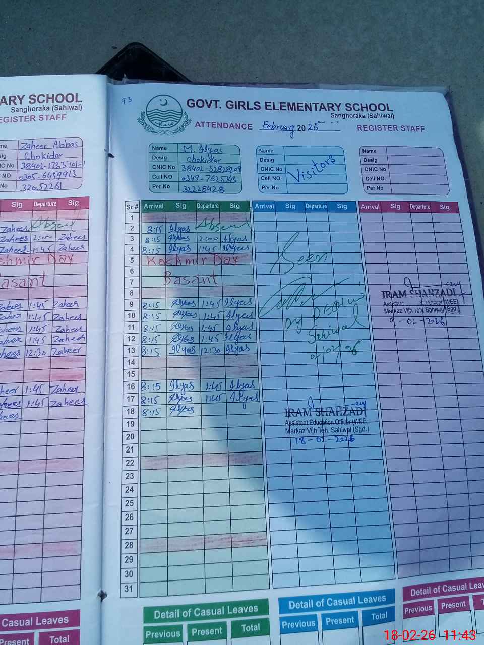 | CNIC | Full Name | Designation | R/C | Absence During Last Calender Month |