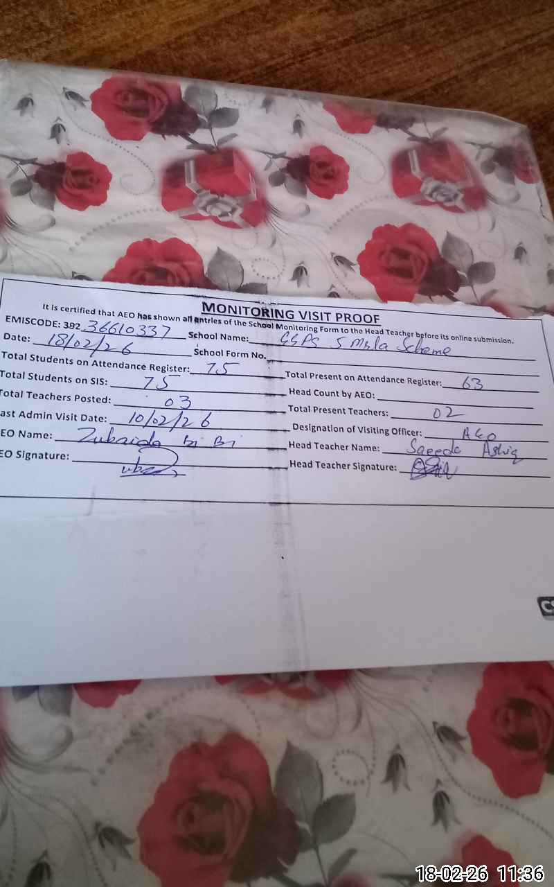 | EMIS Code: 36610337 | Name of School: GGPS PARMET 5 MARLA SCHEME | |||