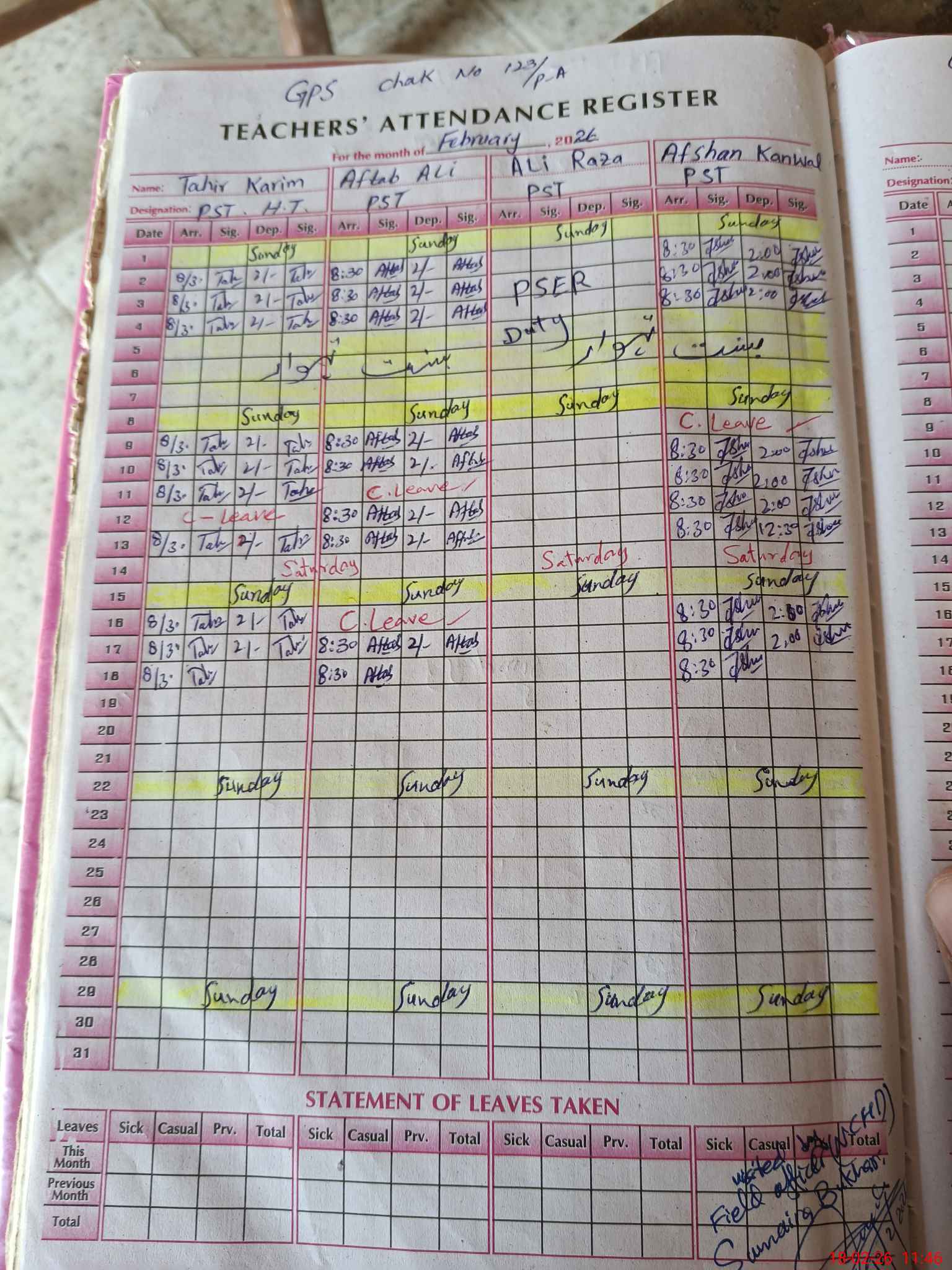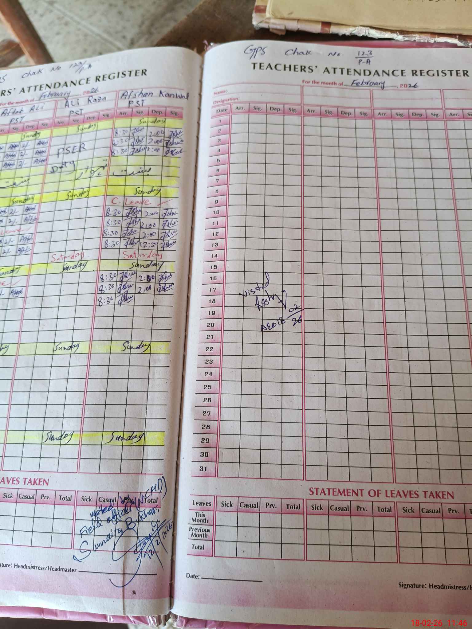 | Name: Ta**** Ka**** Designation: (School Headmaster's/Headmistress's) PST Phone/Cell Number: 03**** |