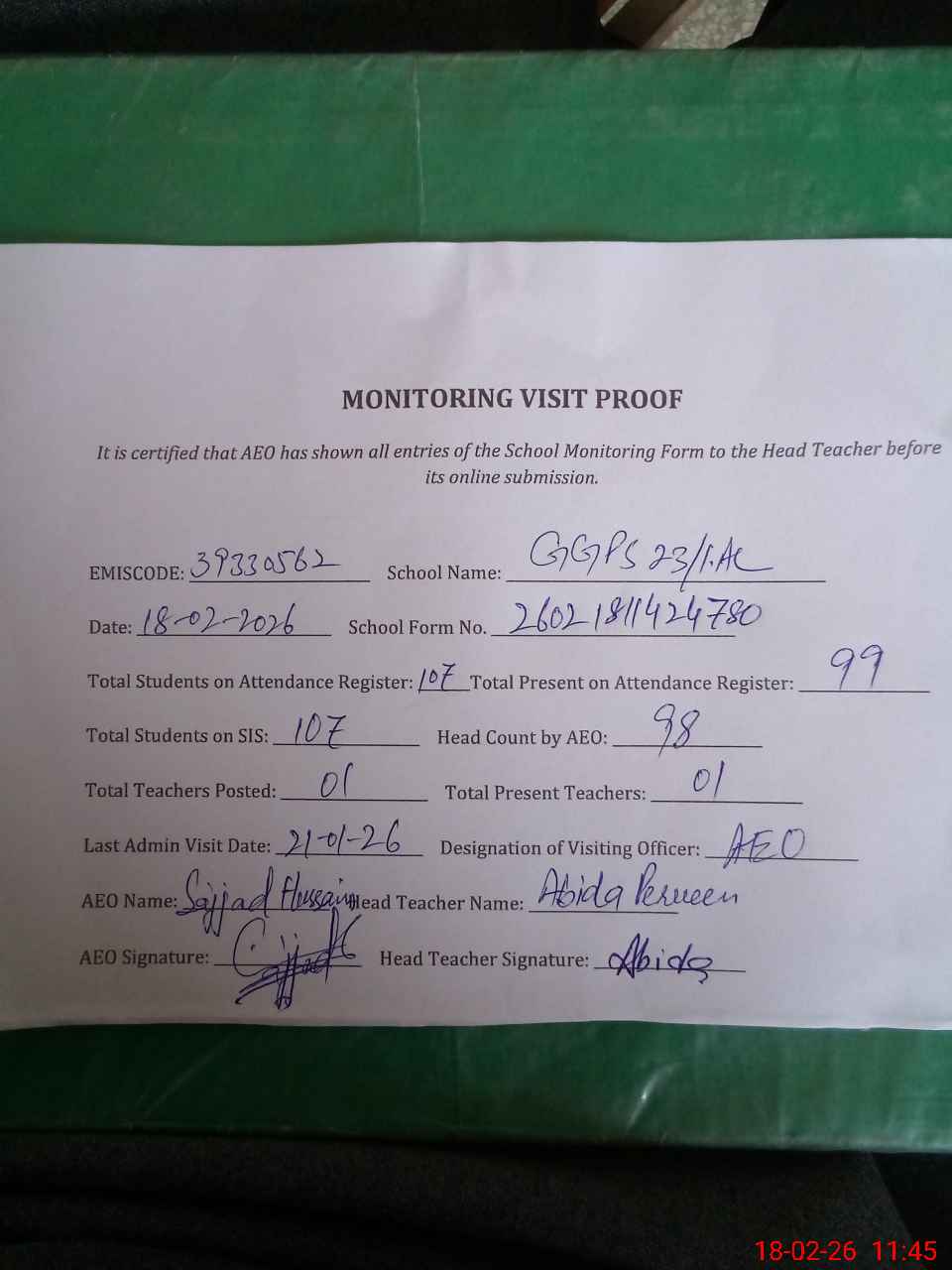 | EMIS Code: 39330562 | Name of School: GGPS 23-1AL | |||