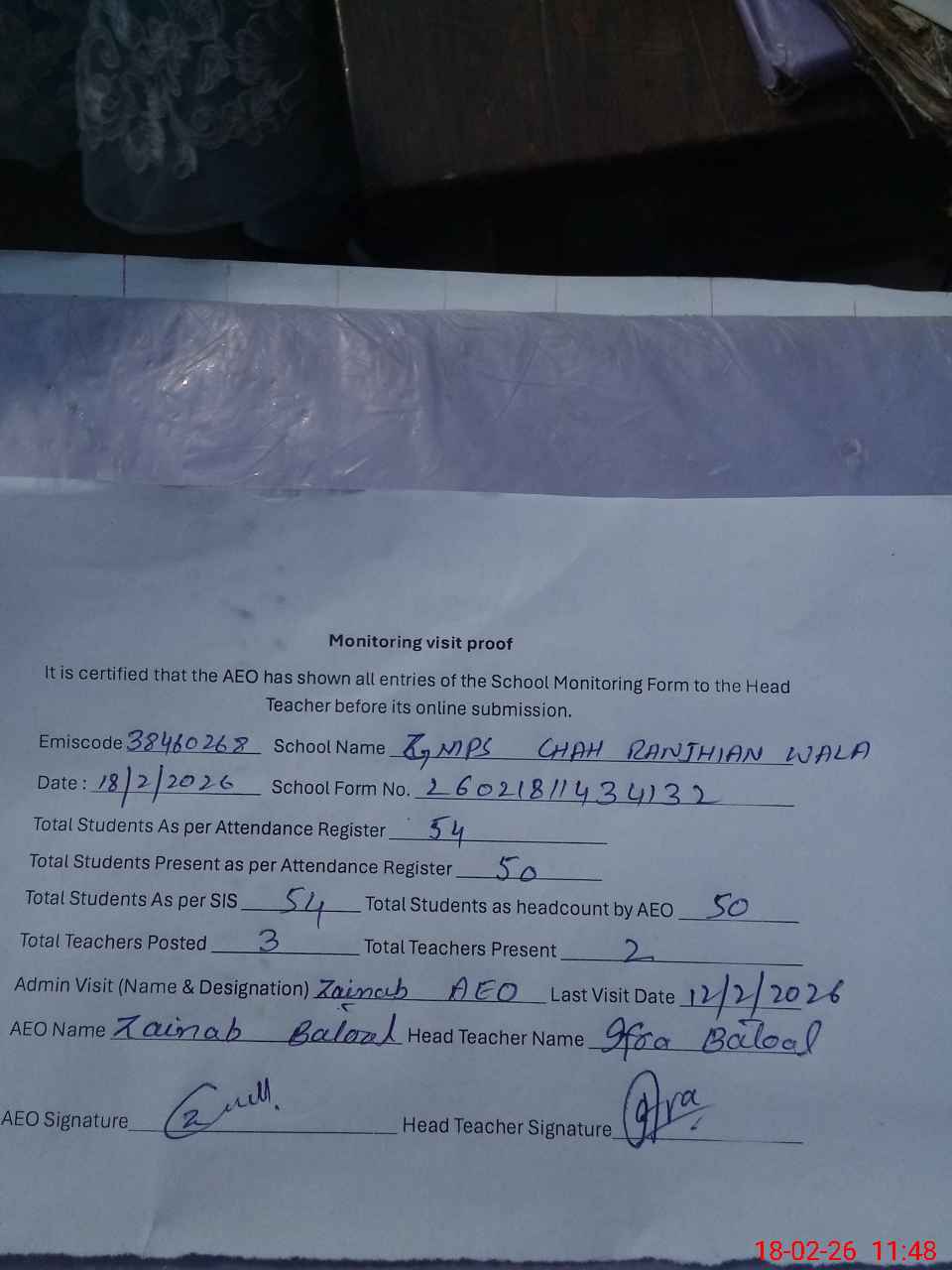 | EMIS Code: 38460268 | Name of School: GMPS CHAH RANJHIAN WALA | |||
