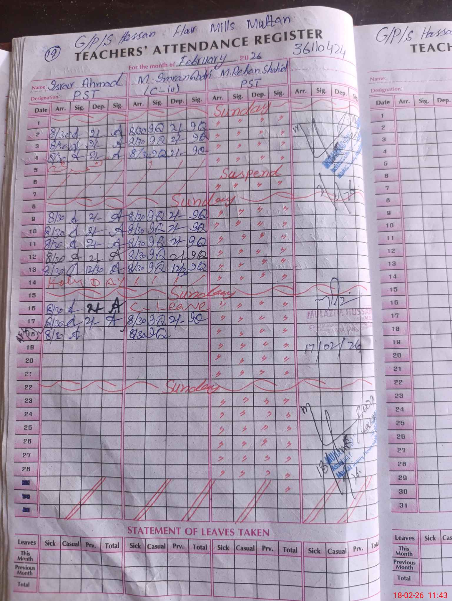 | EMIS Code: 36110424 | Name of School: GPS HASSAN FLOOR MILLS MULTAN | |||