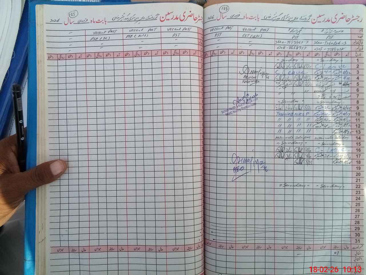 | CNIC | Full Name | Designation | R/C | Absence During Last Calender Month |