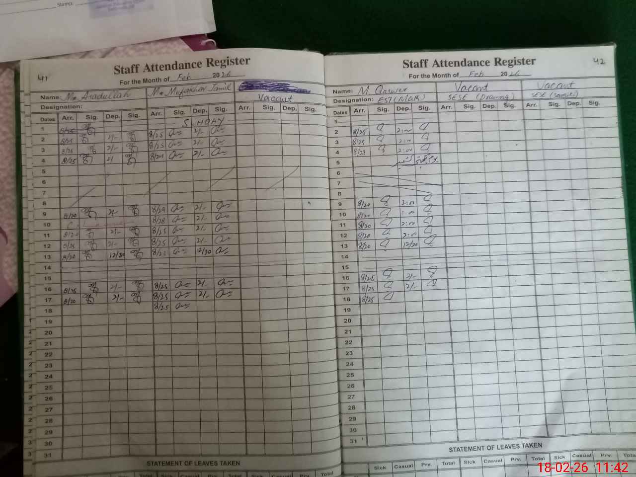 | 36**** | Mu**** As**** Kh**** | EST General Arts | Regular | 0 | 0 | 0 | 0 | 0 | 0 | 0 | 0 | 0 | Casual |