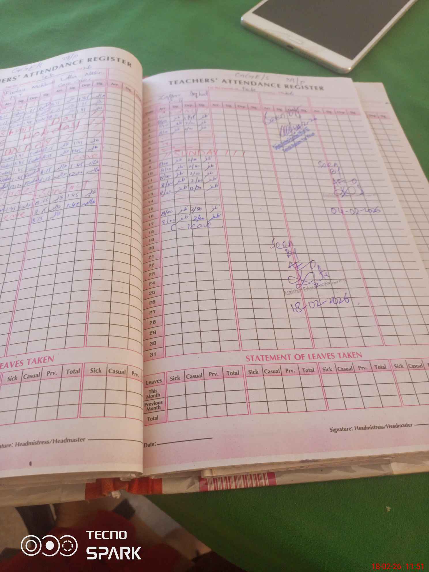 | Attendance Register | Head Teacher | MEA with School | Visit Proof |