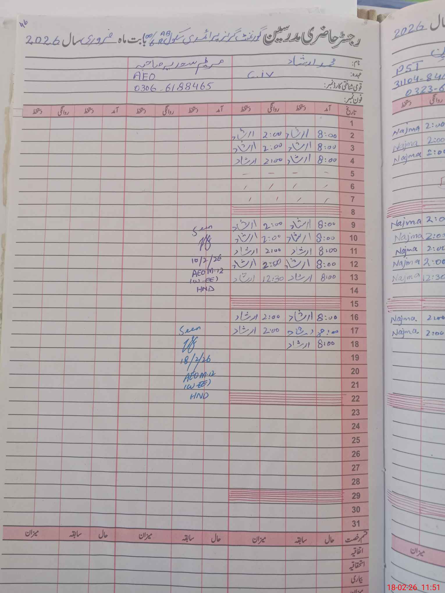 | Name: Ri**** As**** Designation: (School Headmaster's/Headmistress's) EST Phone/Cell Number: 03**** |