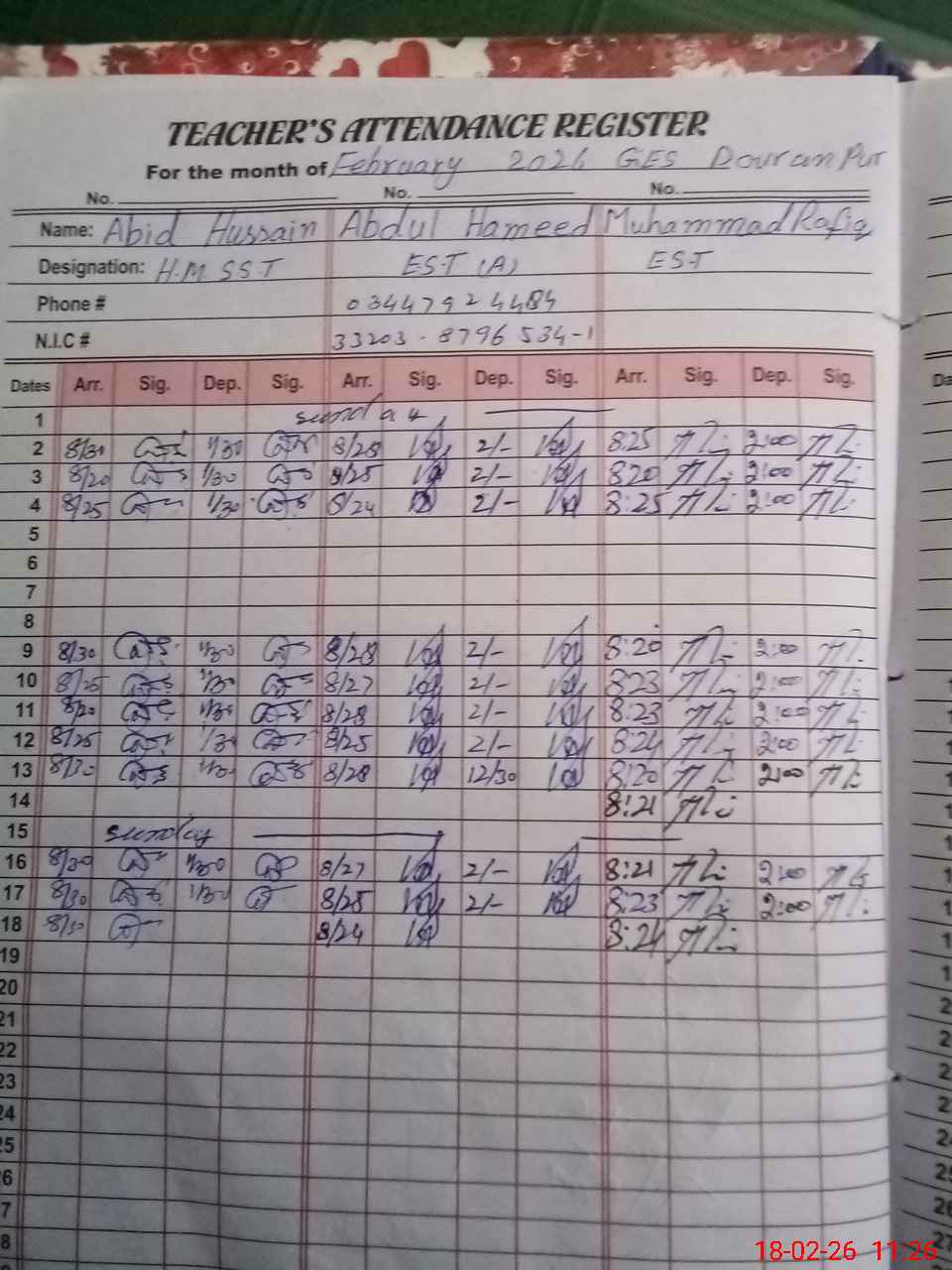 | Name: AB**** HU**** Designation: (School Headmaster's/Headmistress's) S.S.T Phone/Cell Number: 03**** |