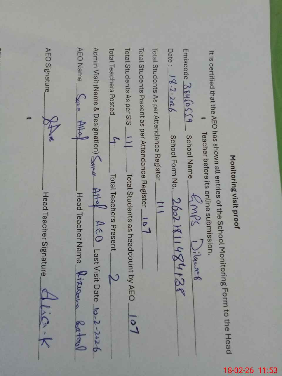 | Certified that this School was Inspected by the Undersigned MEA/DMO Today and the Information Stated Above is as Per Record. | |||||