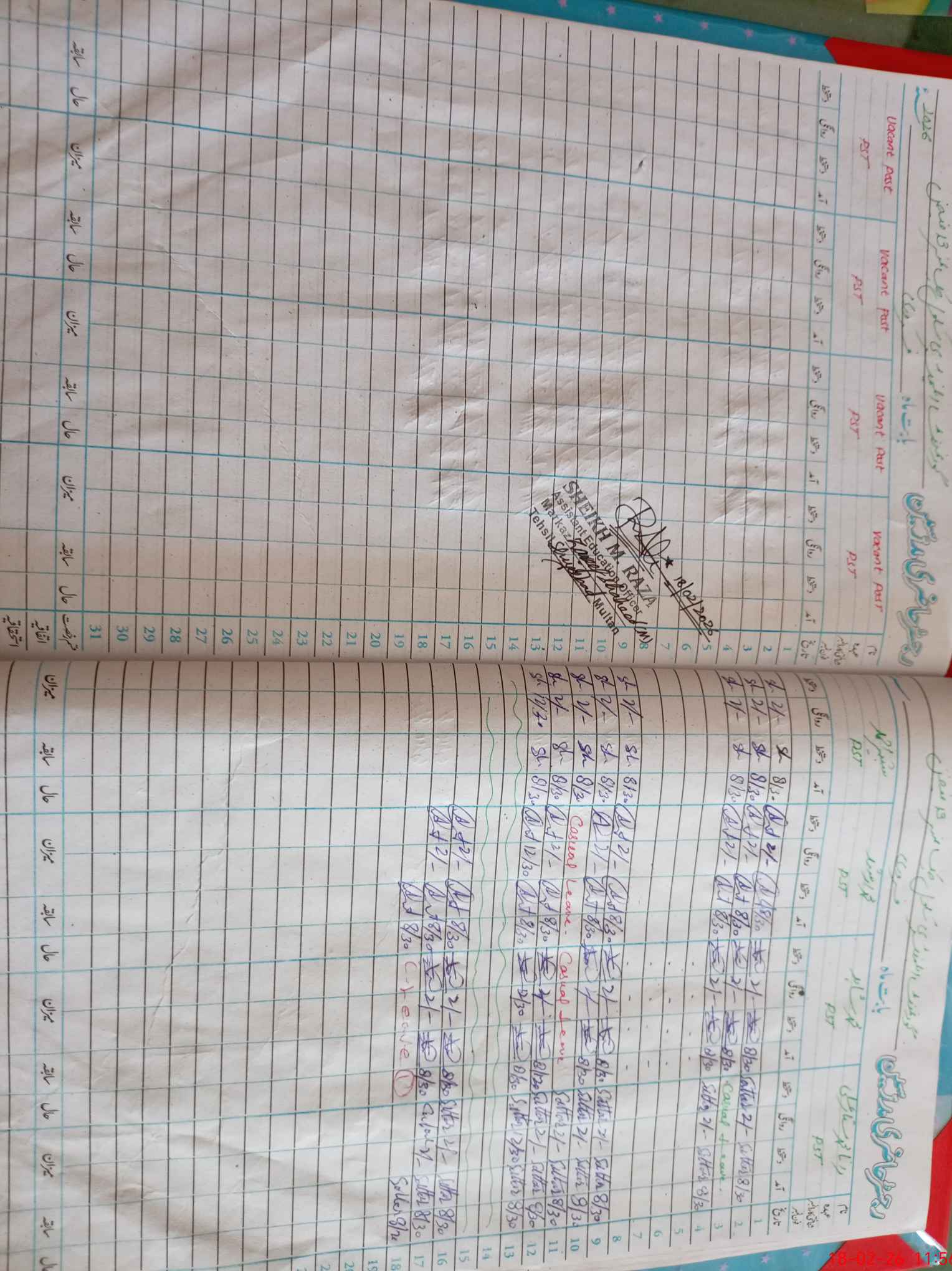 | CNIC | Full Name | Designation | R/C | Absence During Last Calender Month |