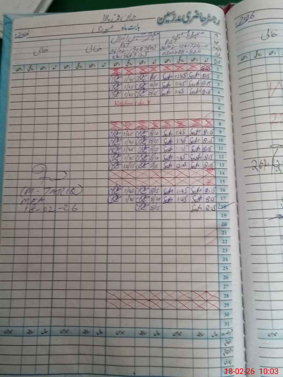 | CNIC | Full Name | Designation | R/C | Absence During Last Calender Month |