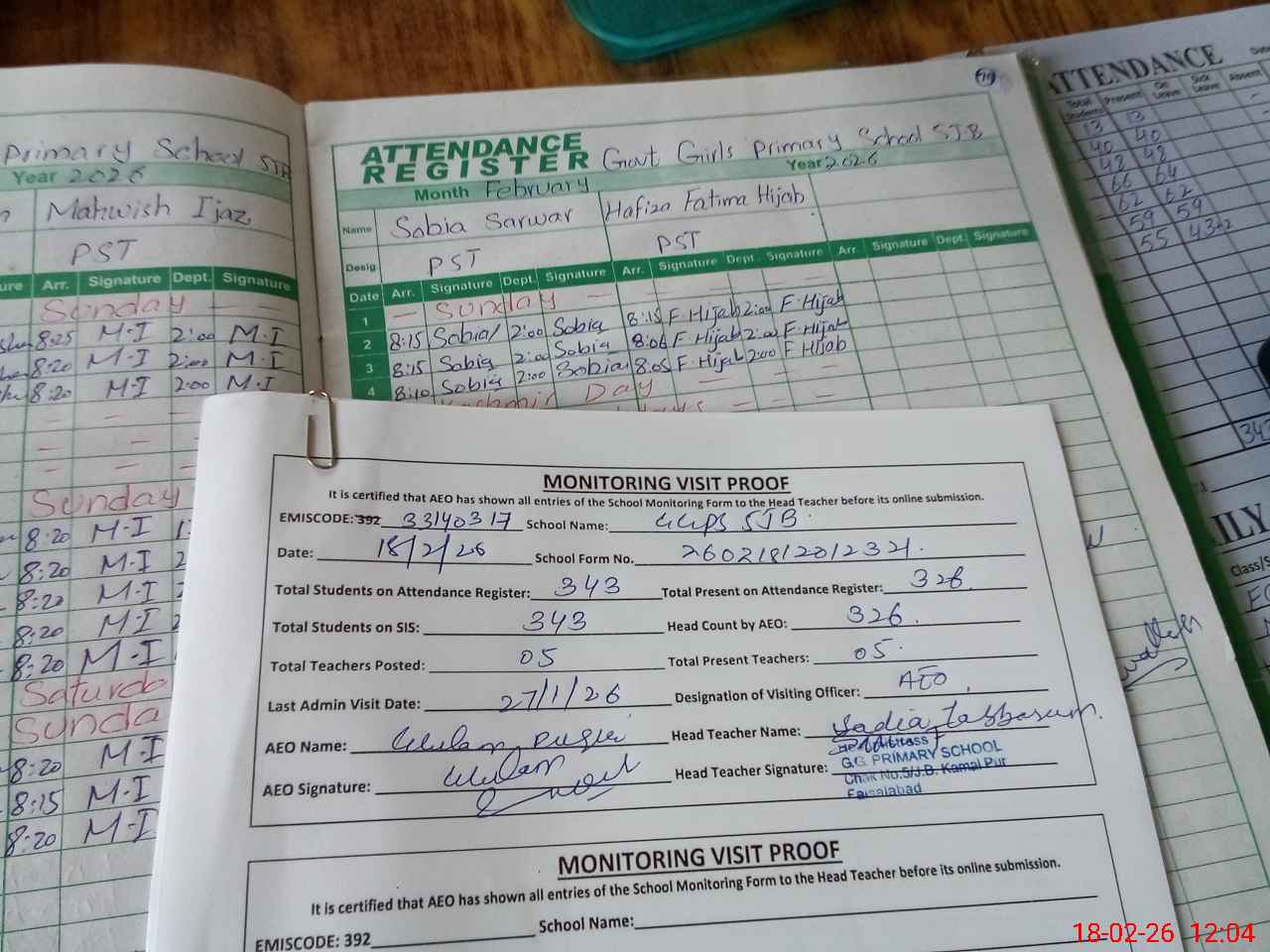 | EMIS Code: 33140317 | Name of School: GGPS CHAK 5 JB | |||
