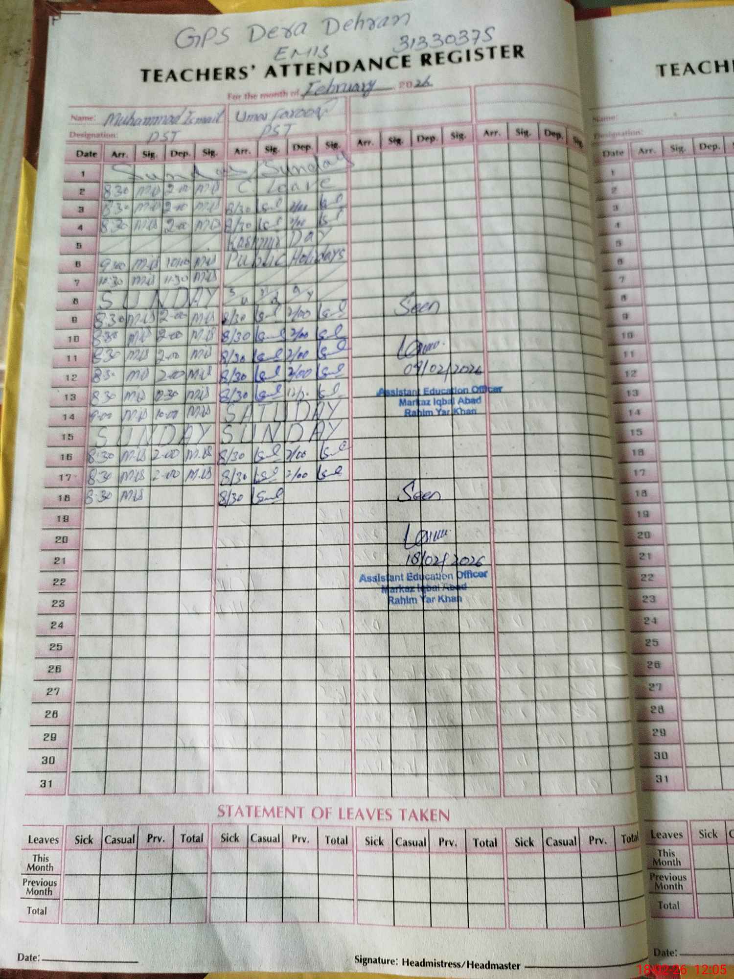 | EMIS Code: 31330375 | Name of School: GPS DERA DAHRAN | |||
