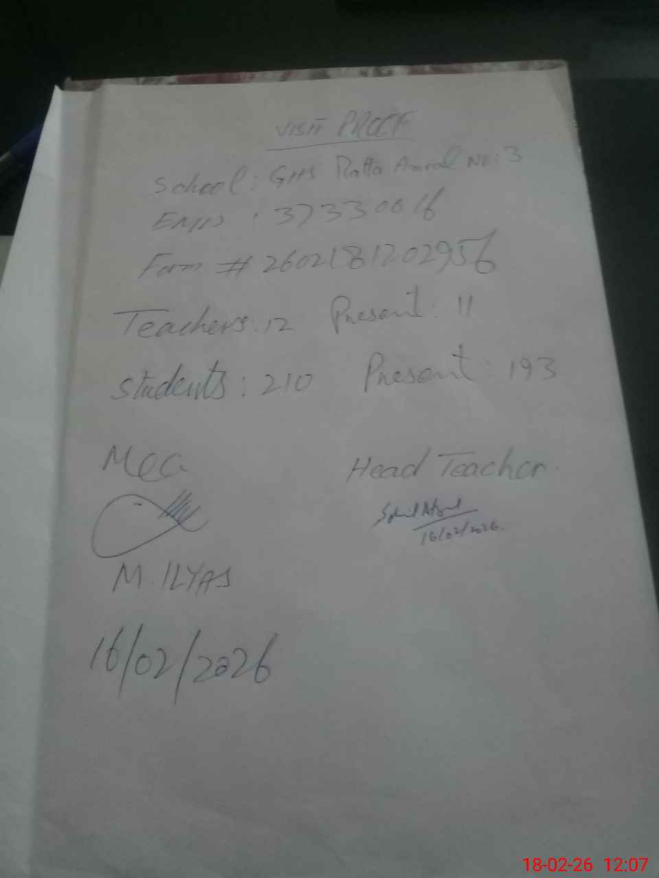 | EMIS Code: 37330016 | Name of School: GHS ISLAMIA NO. 3 RATTA AMRAL RAWALPINDI | |||