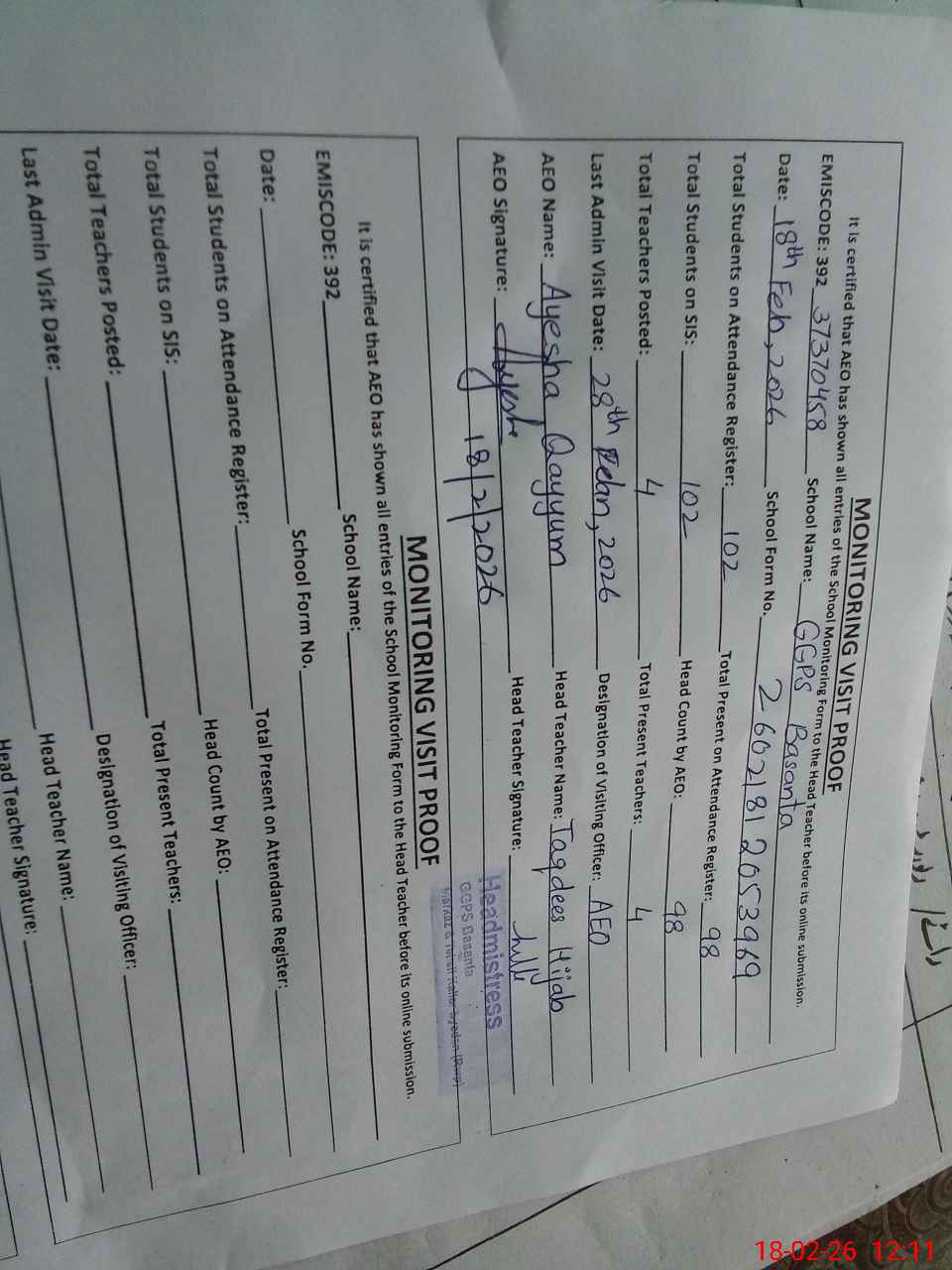 | EMIS Code: 37370458 | Name of School: GGPS BASANTA | |||