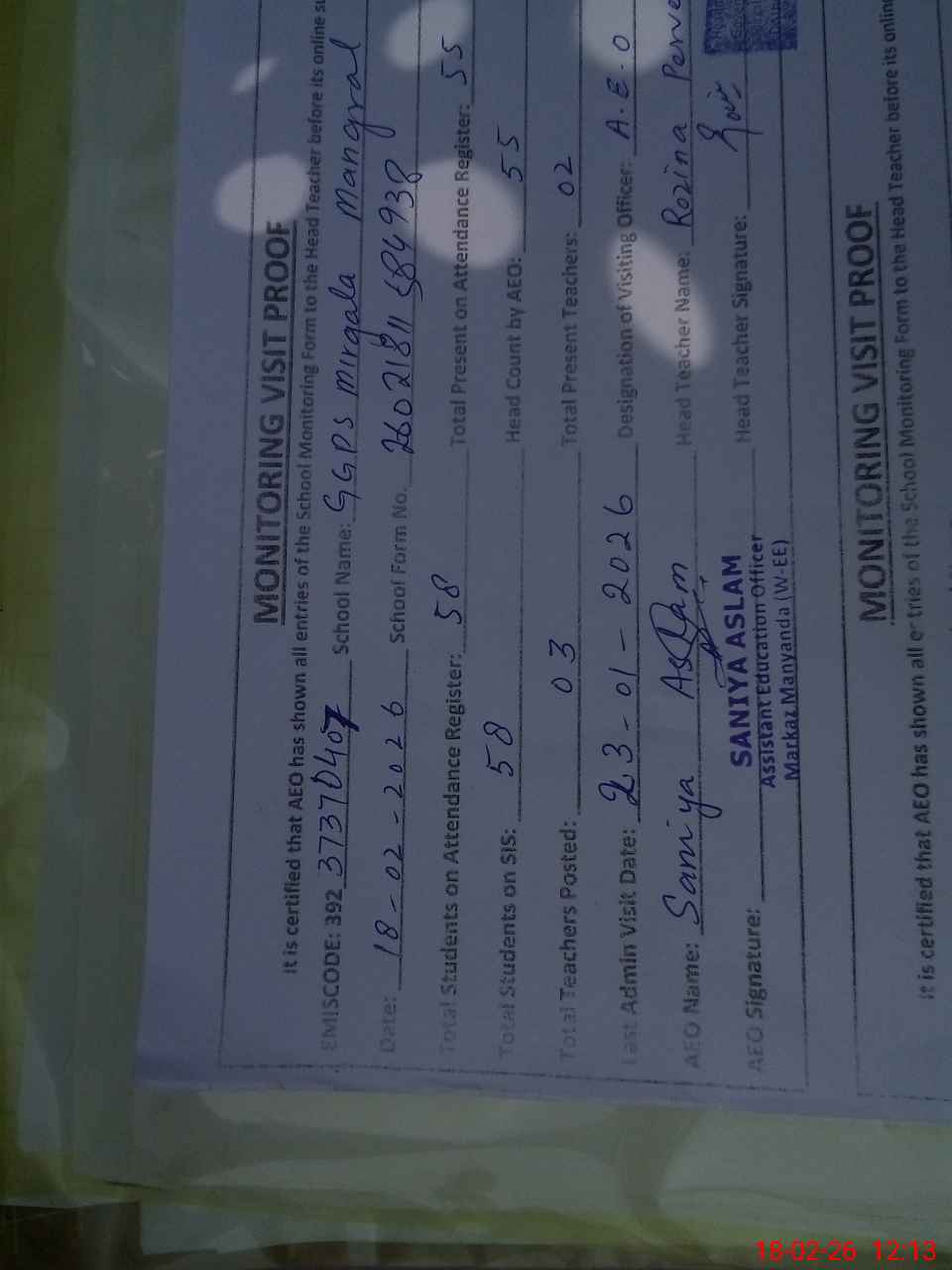 | EMIS Code: 37370407 | Name of School: GGPS MIR GALA MANGALA | |||