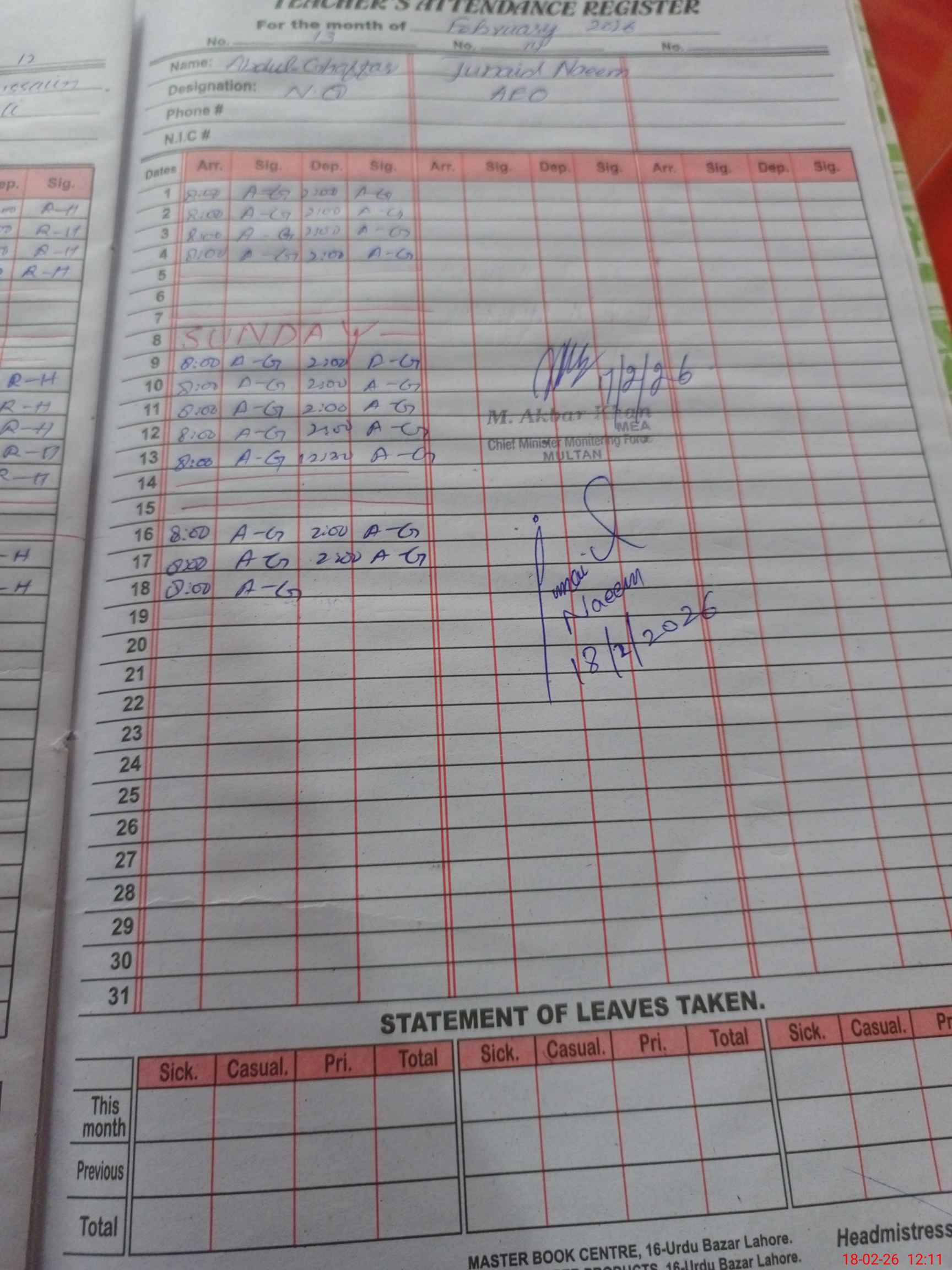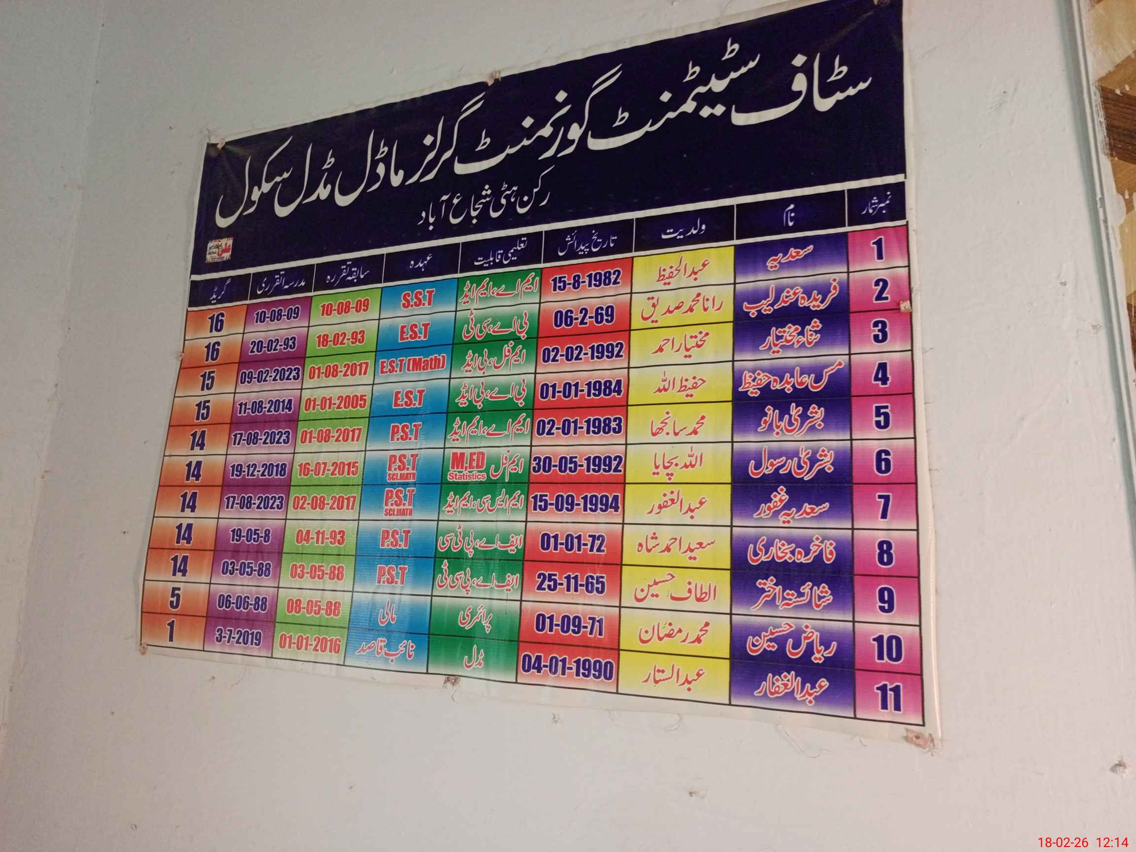 | 36**** | Sa**** Gh**** | PST Science/Maths | Regular | 0 | 0 | 0 | 0 | 0 | 0 | 0 | 0 | 0 | Maternity |