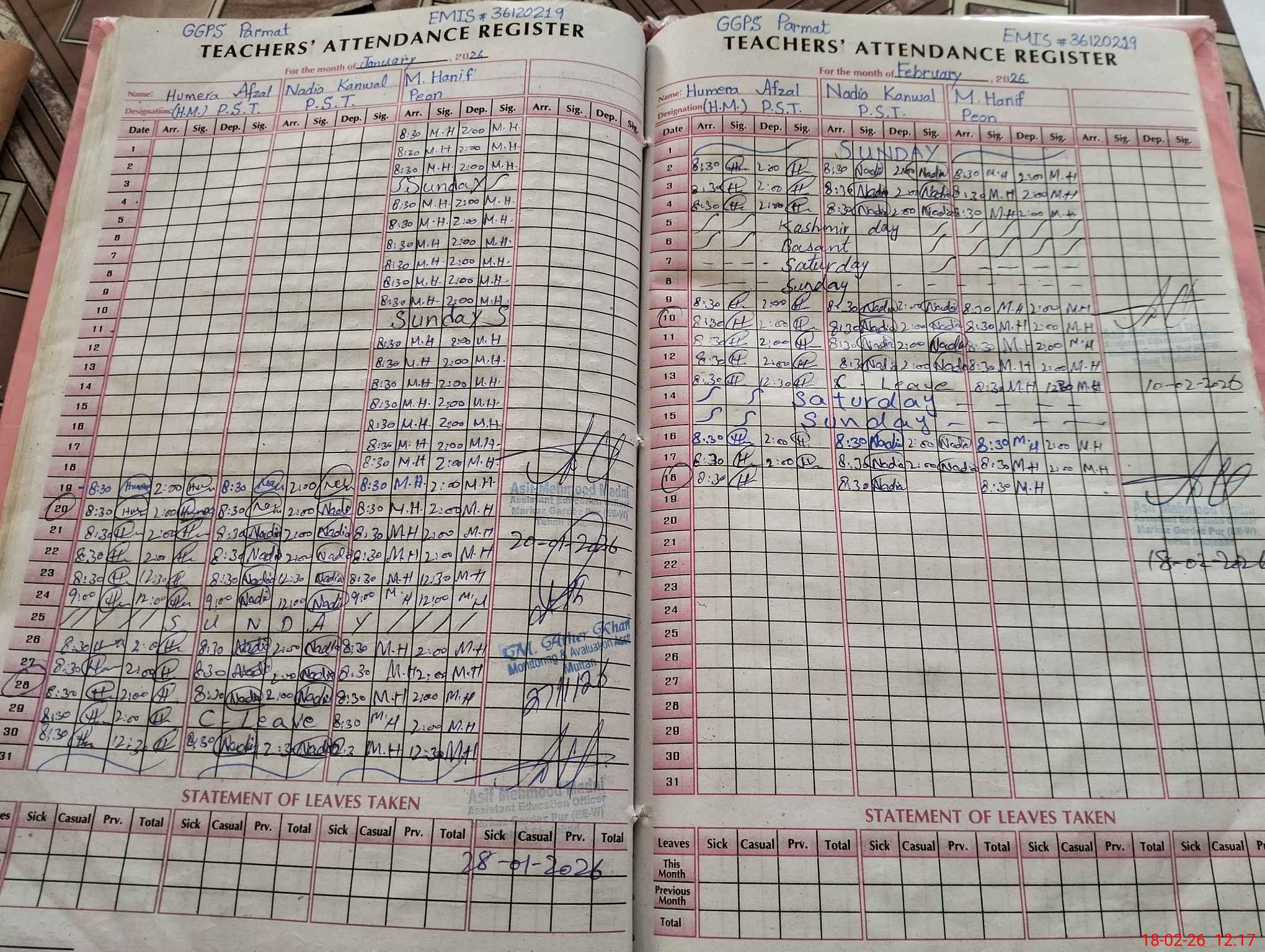 | EMIS Code: 36120219 | Name of School: GGPS PARMAT STOP MUZA HALALWAJA | |||