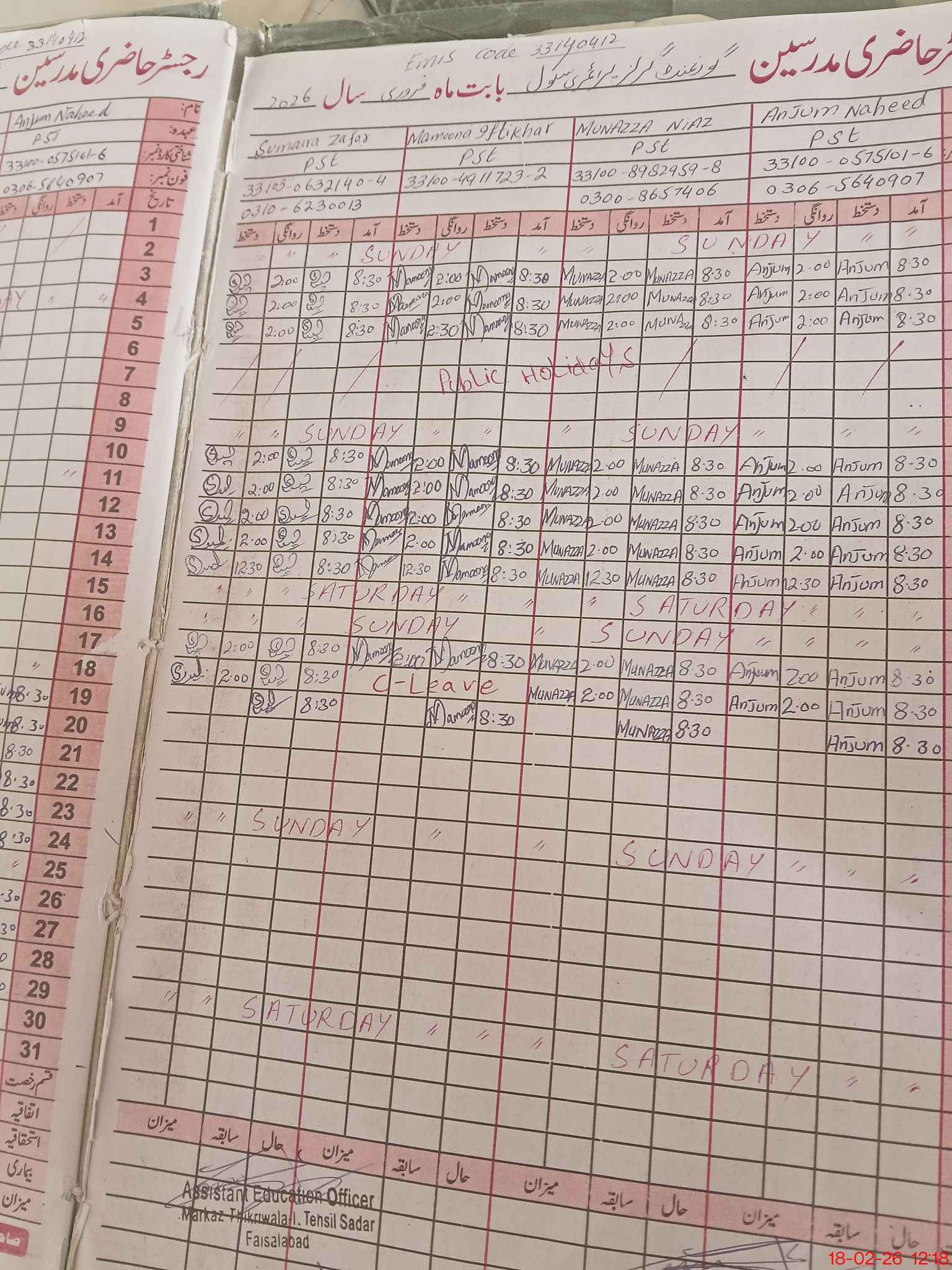 | Name: Mu**** Ni**** Designation: (School Headmaster's/Headmistress's) PST Phone/Cell Number: 03**** |