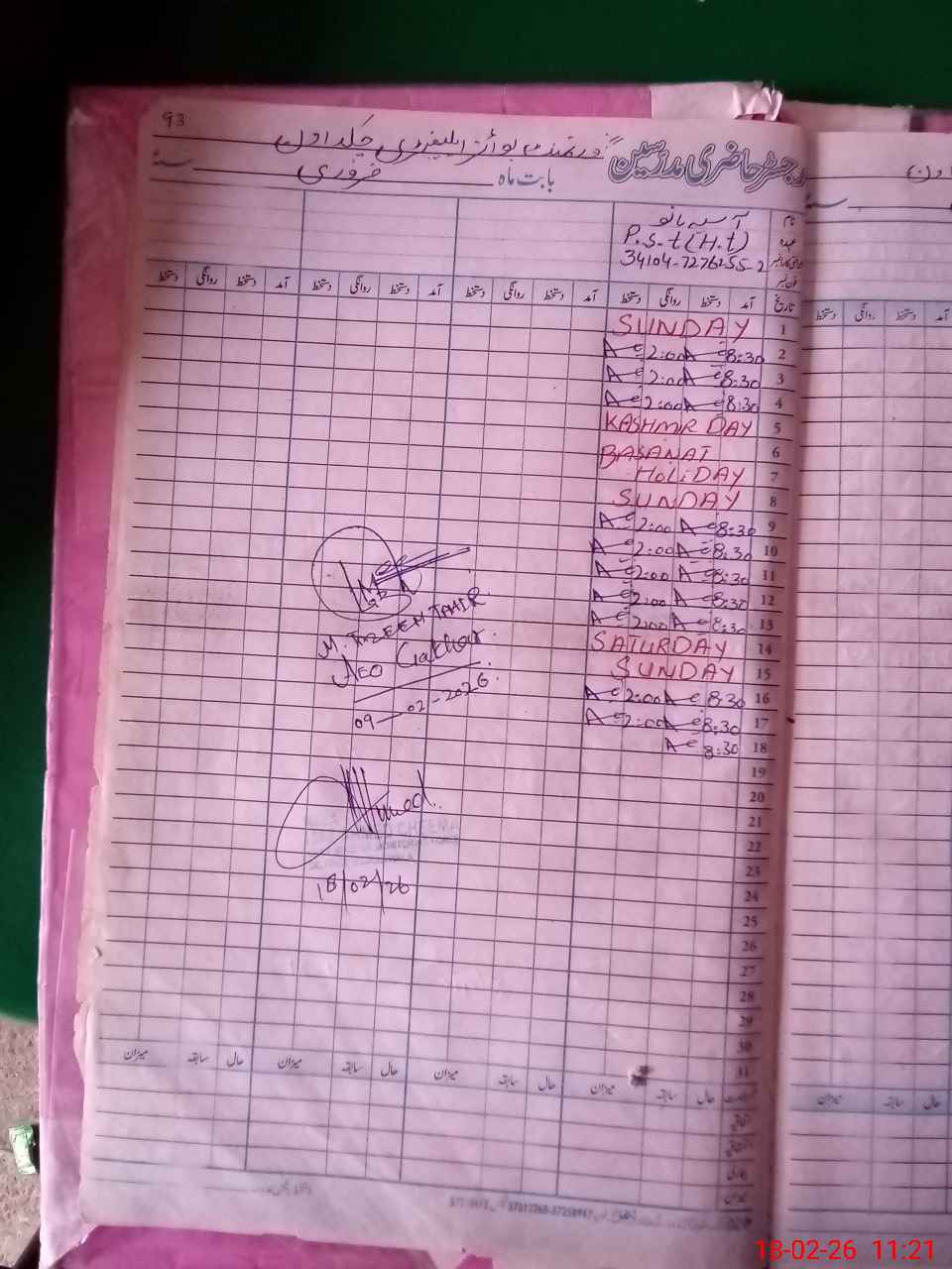 | Name: As**** Ba**** Designation: (School Headmaster's/Headmistress's) PST Phone/Cell Number: 03**** |