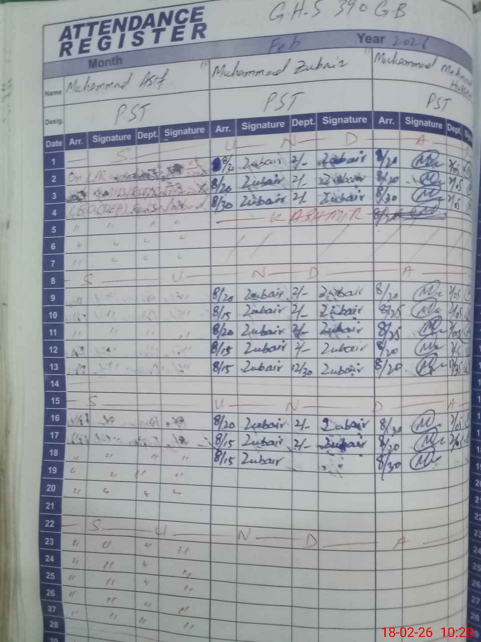 | CNIC | Full Name | Designation | R/C | Absence During Last Calender Month |