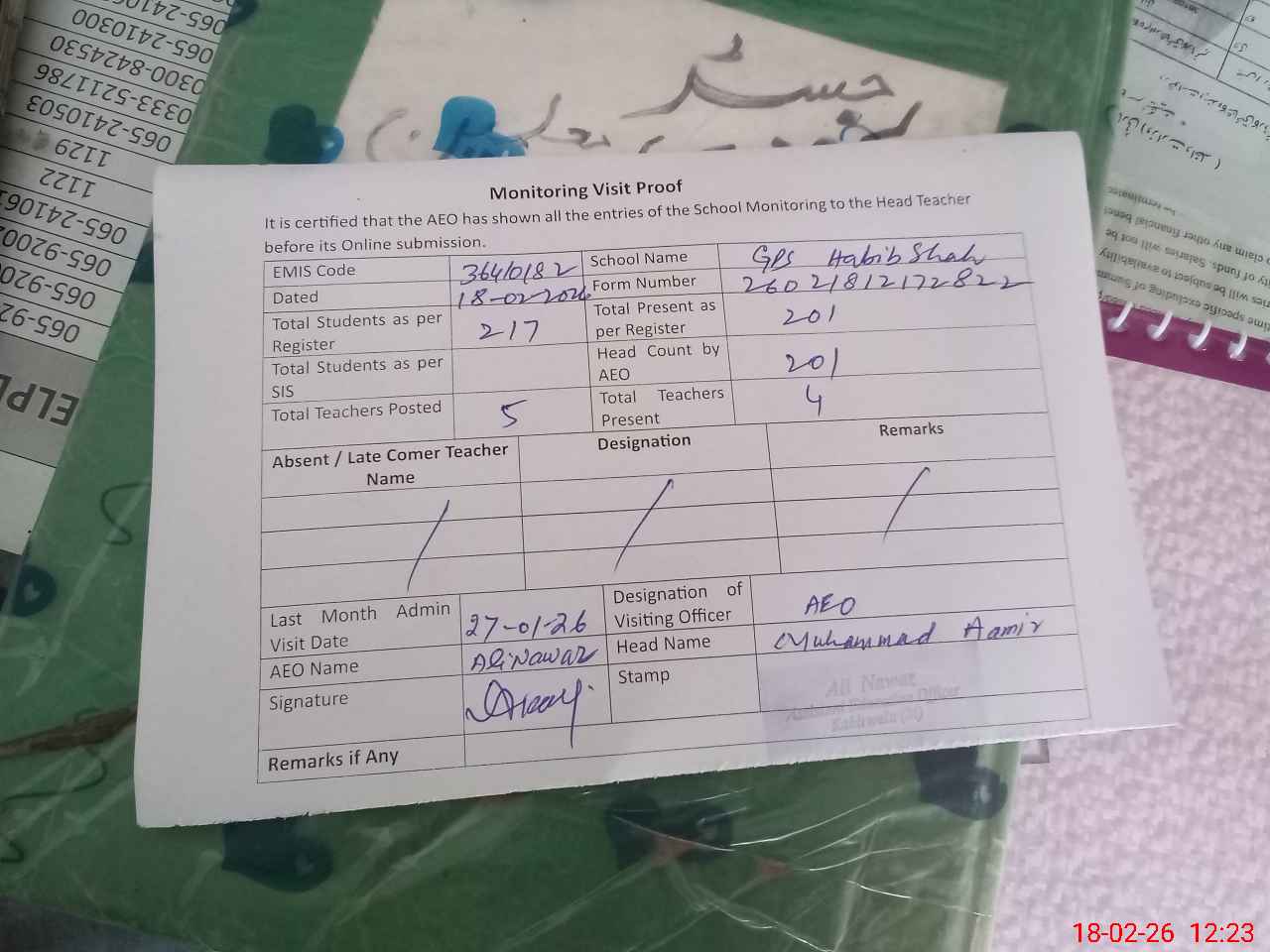 | EMIS Code: 36410182 | Name of School: GPS HABIB SHAH WALA, KABIRWALA | |||
