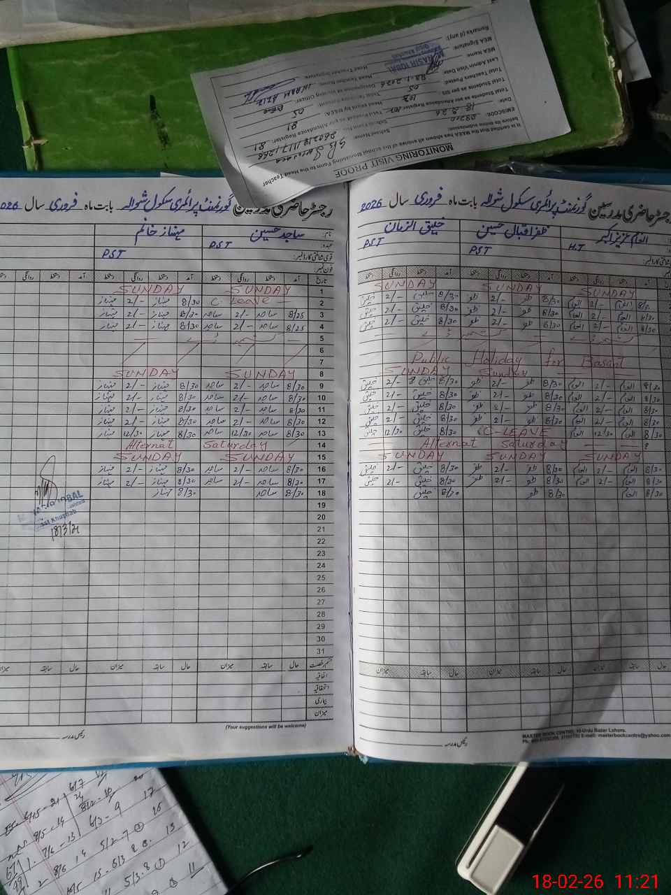 | Name: In**** Az**** Ak**** Designation: (School Headmaster's/Headmistress's) PST Phone/Cell Number: 03**** |