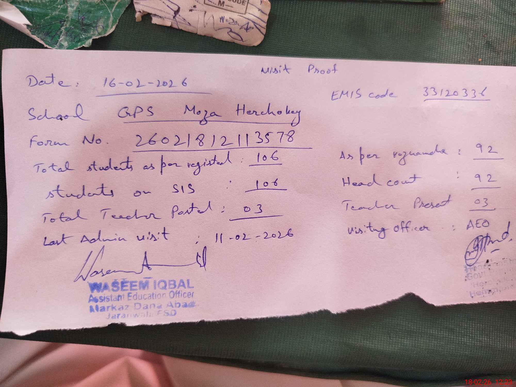 | EMIS Code: 33120336 | Name of School: GPS MOZA HERCHOKAY | |||