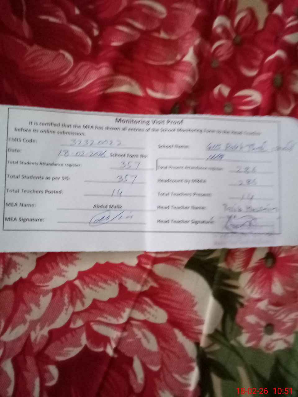 | Certified that this School was Inspected by the Undersigned MEA/DMO Today and the Information Stated Above is as Per Record. | |||||