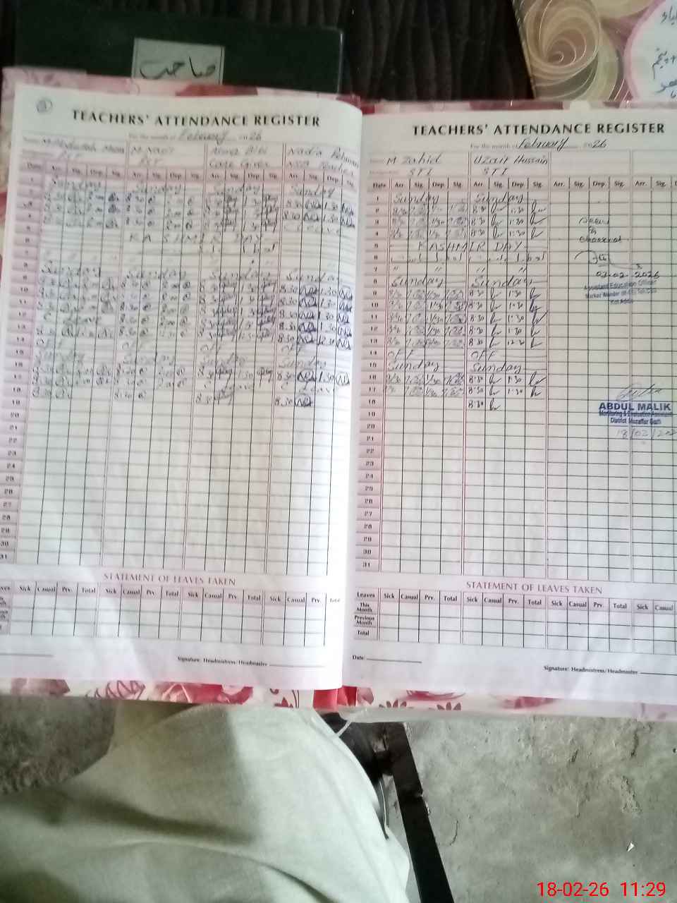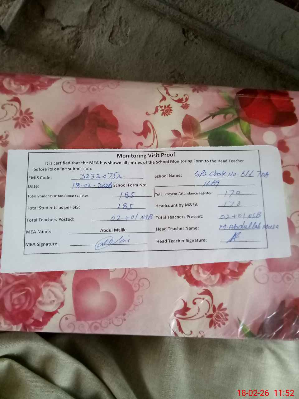 | Attendance Register | Head Teacher | MEA with School | Visit Proof |